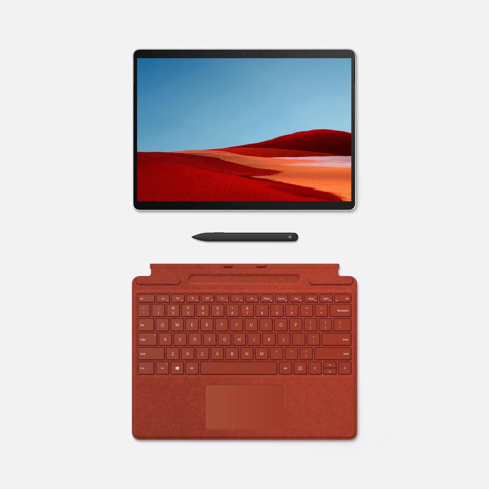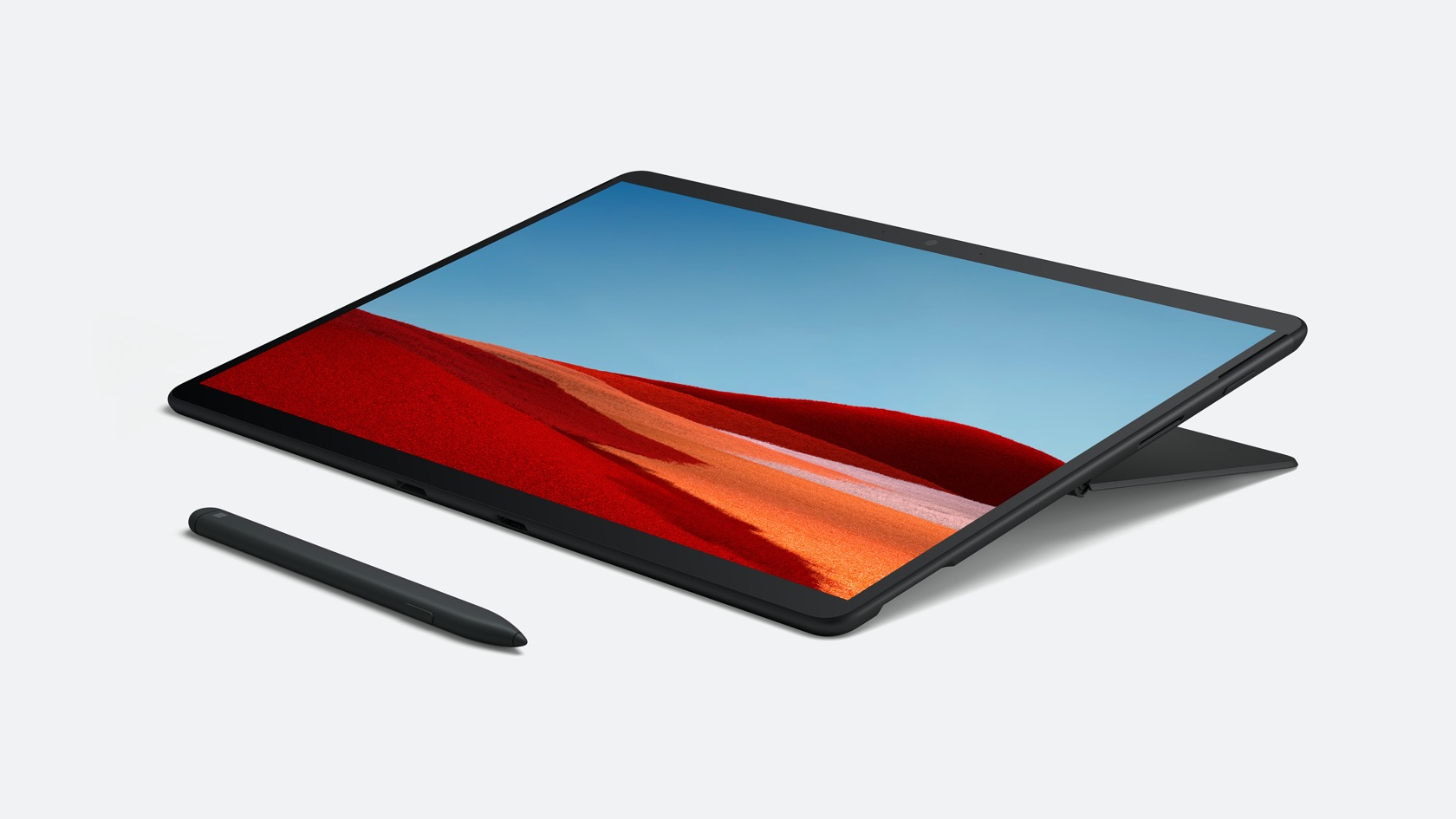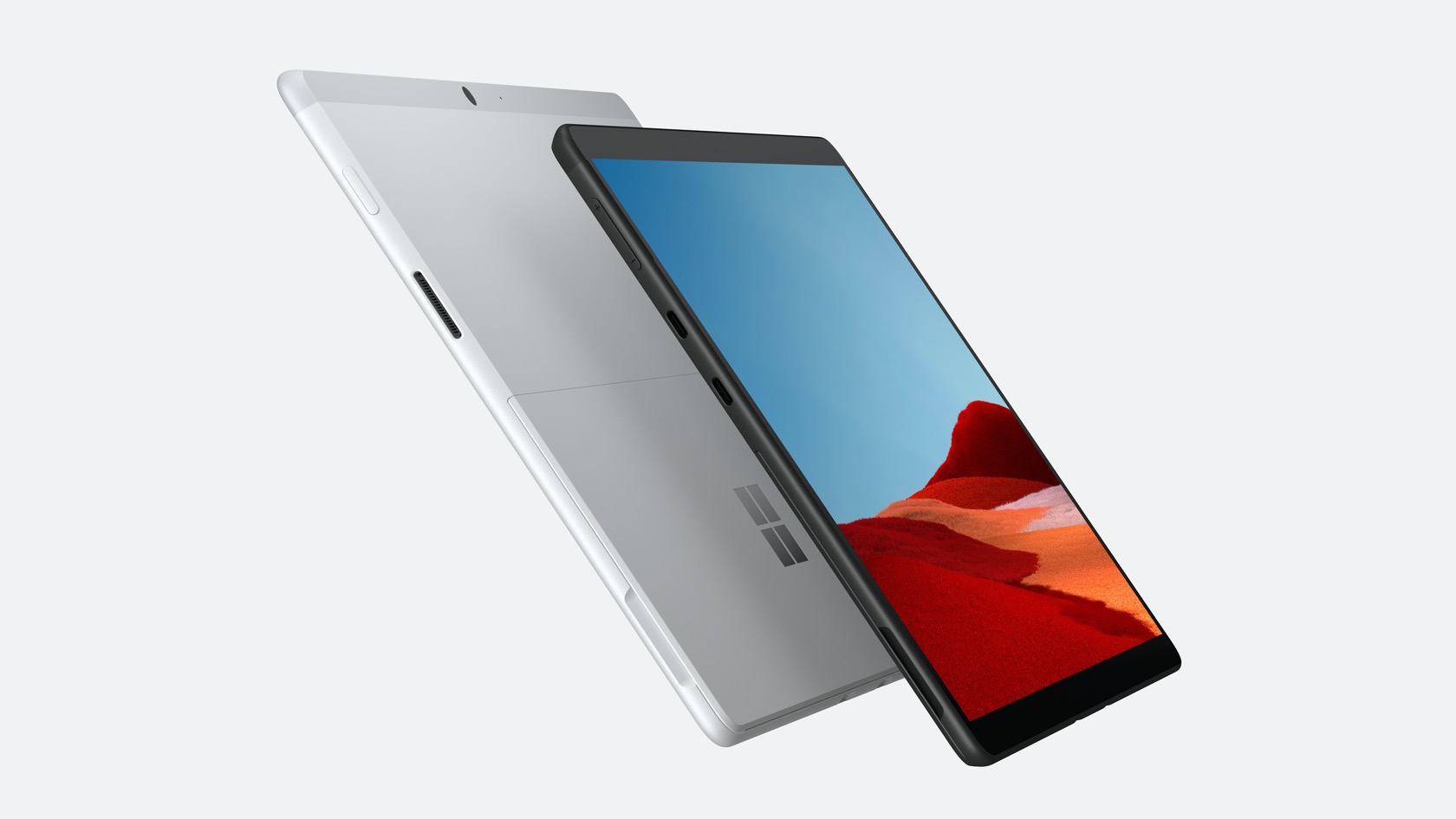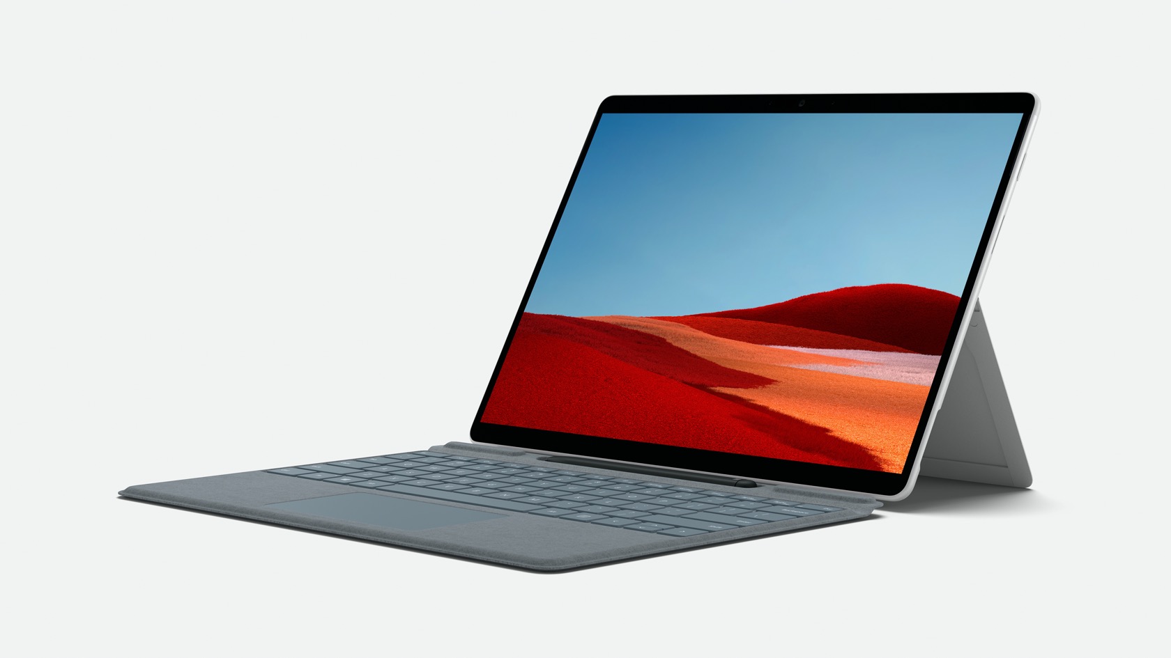 This time around, there'll be both Matte Black and Platinum finishes. The Surface Pro X weighs in at 1.7 pounds – not including the keyboard – and there's of course support for the Surface Pen with its 4,096 levels of pressure sensitivity and tilt sensing. As for the Surface Keyboard, that's available in three new finishes: Ice Blu, Poppy Red, and Platinum, along with the original Black.