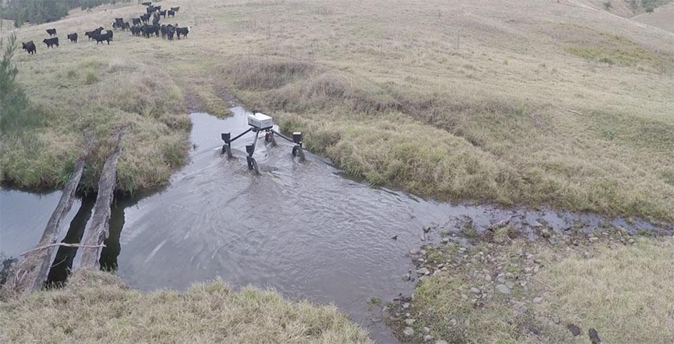 The latest robot that the ACFR is testing is called the SwagBot and it is able to do things like herd animals and monitor them for ranchers. SwagBot is meant to be cheap but powerful and able to work in large and rugged areas. Sukkarieh said, "Because of the type of terrain ... it needed to have enough power and articulation capability to clamber over logs and ditches."