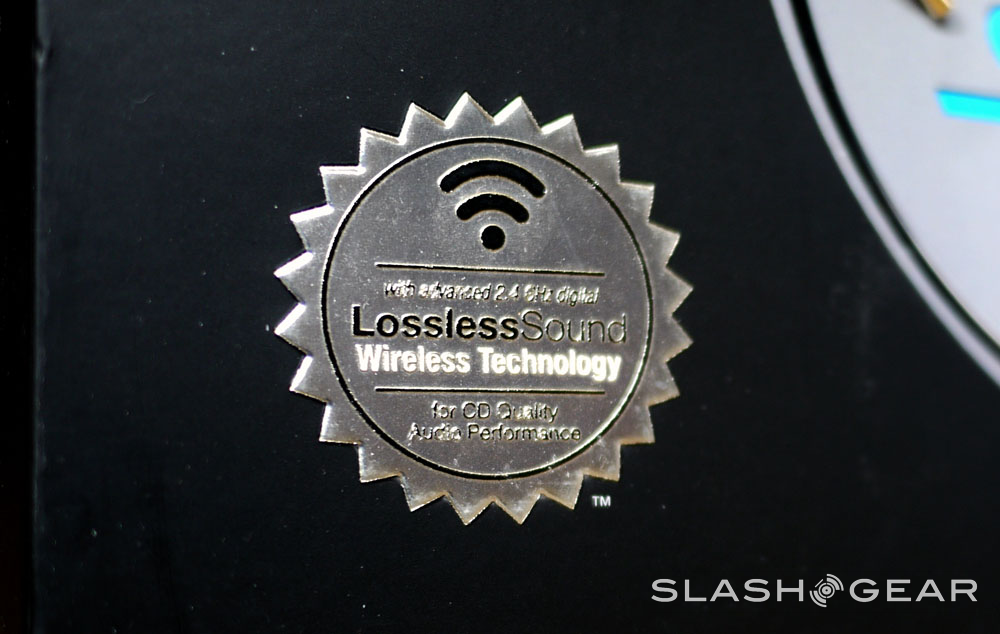 You've got a quick connection to whatever device you're using via the bluetooth dongle with only a couple of taps to sync up, then you've got the power to turn it all off, on, up and down, switch tracks, adjust audio, and more straight from the phones themselves. The buttons are physical and sit around the logos on either ear. The logos on either ear light up depending on if the phones are on and on if they're connected with bluetooth – there's an airplane mode you'll be able to activate also if you want no lights at all – bright blue blinking best for in-house jams only.