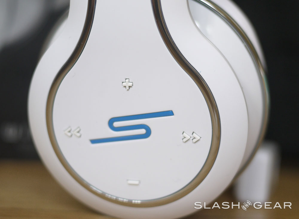 What we've got here is a pair of wireless headphones by the name of Sync by 50, made by SMS audio and sent out in the first wave of headphones approved and tuned personally by 50 Cent and crew. This model is the shiny white version of these bluetooth-enabled phones, a black version also available in stores now – both of these models lit up by the "S" logo on either ear and connected to your bluetooth devices with a dongle about half the size of a pack of gum, and twice as fat. Are these massive and massively flashy headphones worth their equally massive price tag at $399.95? Let's find out!