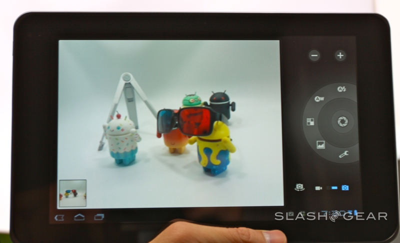 Still photos are solid if nothing to write home about, benefiting from as much natural light as you can give them. Indoors, the single LED flash is underwhelming, and there's plenty of noise in low-light conditions. Video can be shot in 2D or 3D, though only at up to 720p HD resolution, and works well, though there's some tearing with faster movements. Viewed in anaglyph mode, it feels gimmicky, the color balance affected by the red/cyan glasses. "Proper" side-by-side 3D is more successful: we plugged the G-Slate into a Samsung 3D HDTV, and the results proved surprisingly good considering it was a tablet camera. Nonetheless, we're not convinced that 3D filming is something that most people will do more than try a few times and then ignore.
