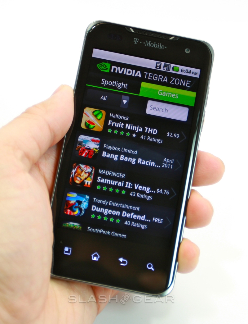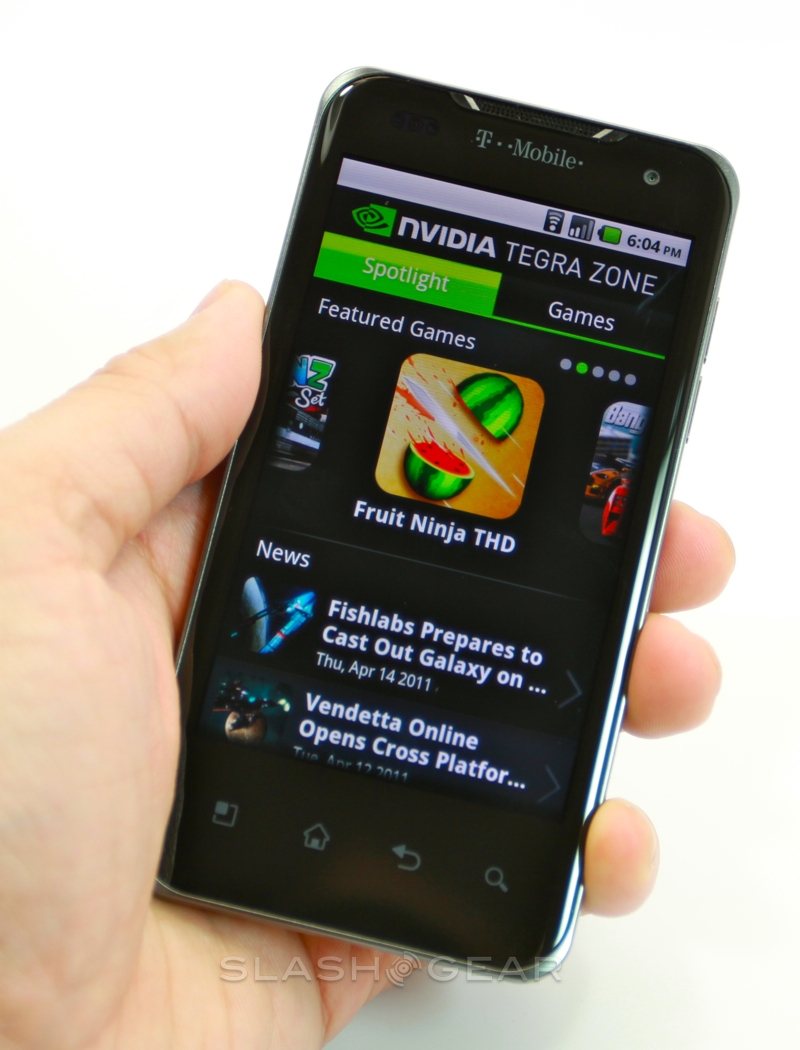 What you do get are some preloaded apps, including a demo of N.O.V.A. Near Orbit Vanguard Alliance HD and a full copy of Need for Speed SHIFT. There's also NVIDIA Tegra Zone, for highlighting the latest and greatest software designed to run best with the 1GHz dual-core chip, T-Mobile TV (which, as on the G-Slate, won't output via the HDMI port), the Zinio magazine app and Qik for two-way video calls. Considering Google is yet to release its own video-calling app for smartphones, that's a sensible inclusion.