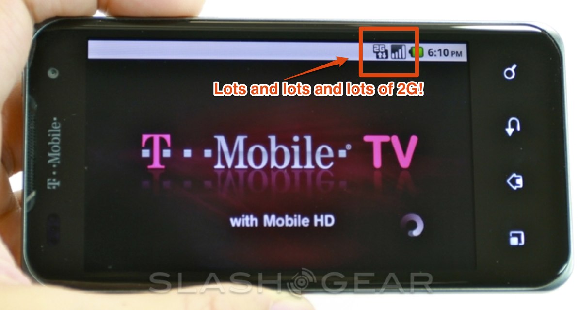 T-Mobile brands the G2x as a 4G device, since it can use the carrier's growing HSPA+ network. Unfortunately we experienced multiple issues with how the G2x handles 2G, 3G and 4G network transitions. These ranged from a general reluctance to shift from 2G to 3G/4G, to dropping calls when moving out of 4G coverage into 2G.