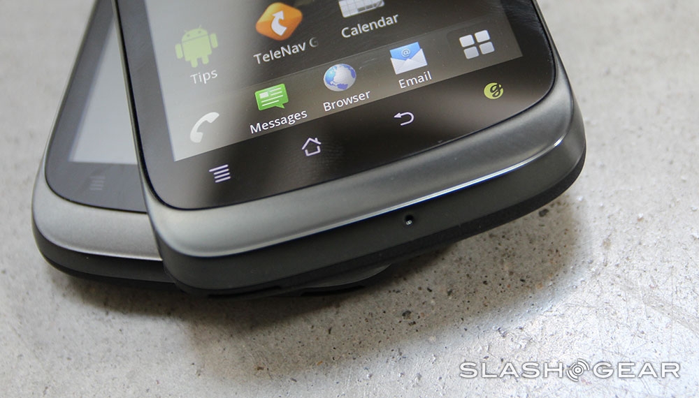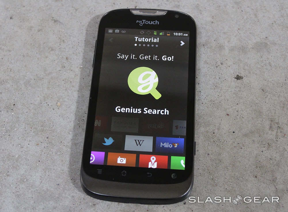 So subtly, in fact, that you might not ever realize who manufactured this device if you didn't take off the battery cover on the back of the device. The front of the device too only says myTouch for a brand, this being T-Mobile's line of affordable yet uniquely situated line of devices made up until now by HTC. The styling here is similar, and for the software there is indeed one component that remains the same – the Genius button.
