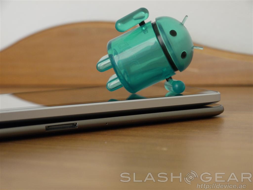 Around to the side we have the power button and the volume up/down rocker. Then neatly on bottom is the micro-USB port for syncing, micro-HDMI for outputting video and pictures, and the power charging port.