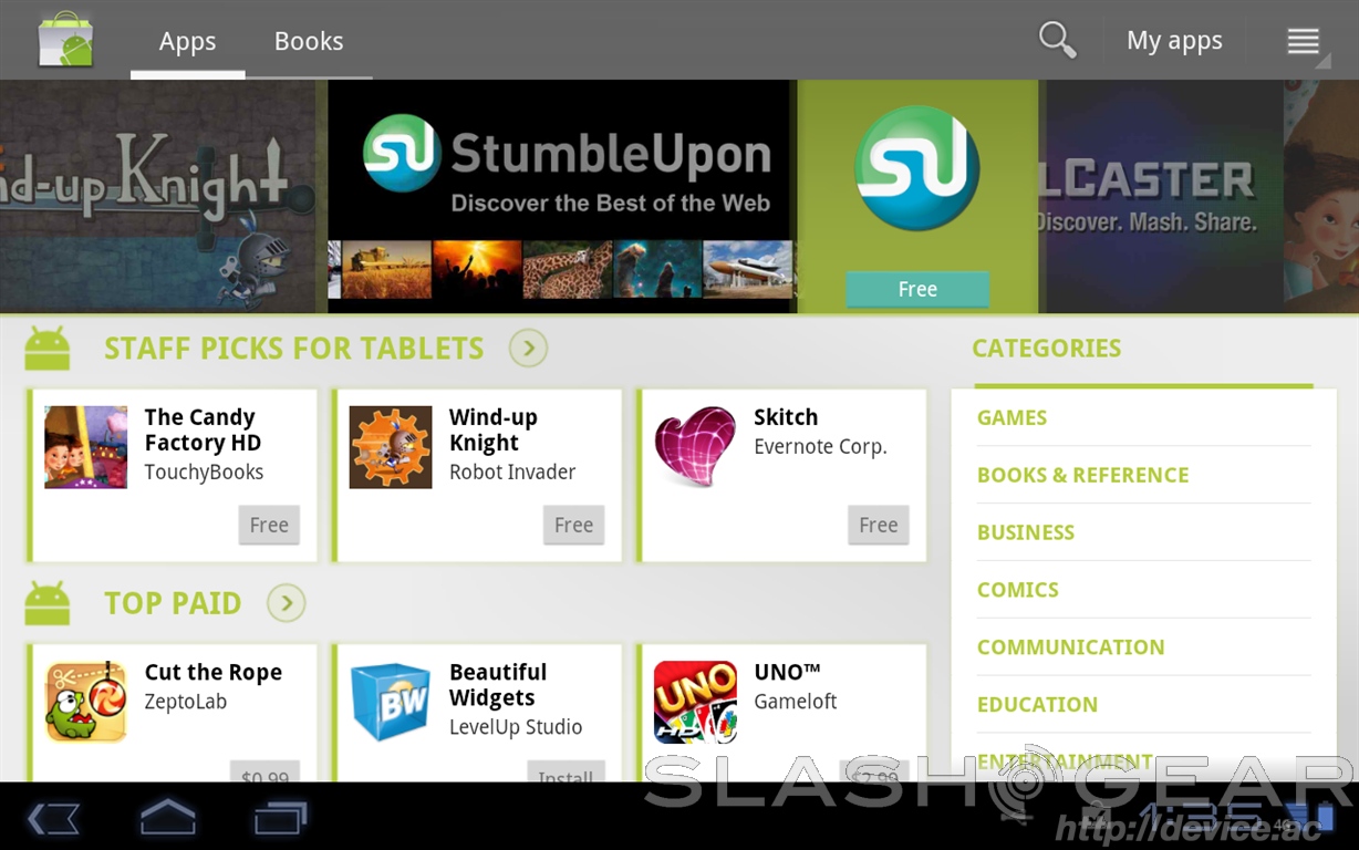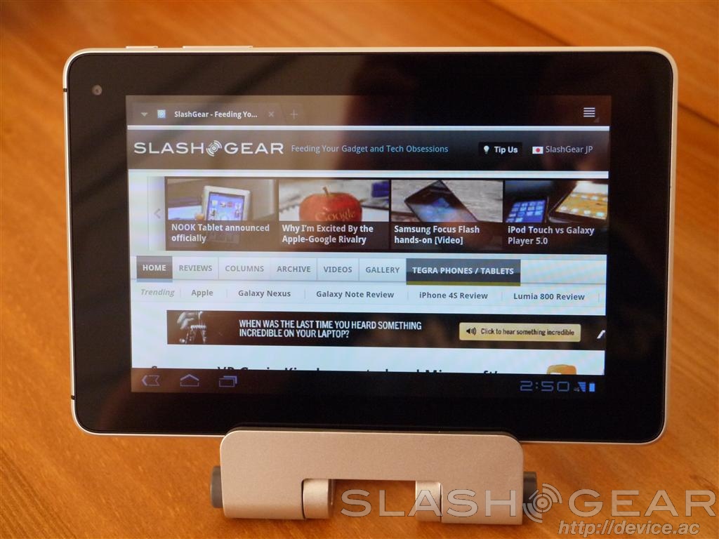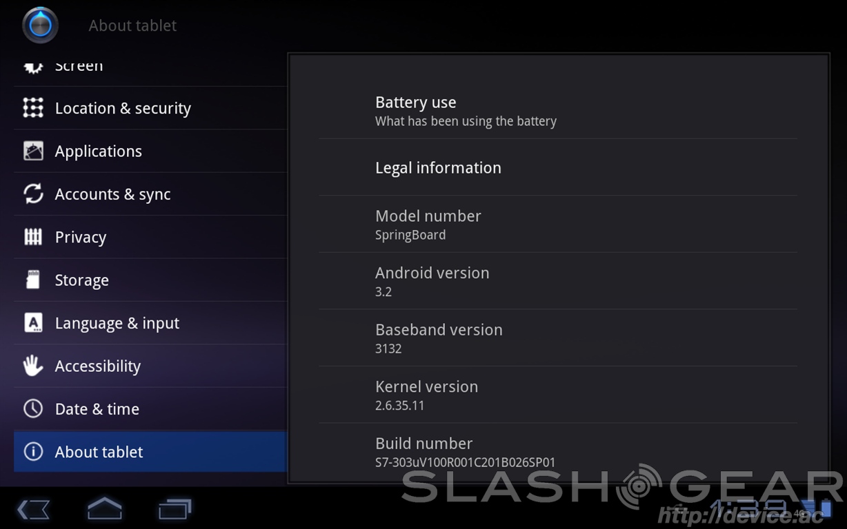Android 3.2 Honeycomb has all the recent improvements Google has made to the tablet OS and so far I've had a pretty smooth and fluid experience with the Springboard. Although adding widgets to homescreens had some lag I've not seen in other tablets, that is the only issue I've encountered — that and some apps don't seem to work quite right with the 7" display, including the pre-installed app Qello.