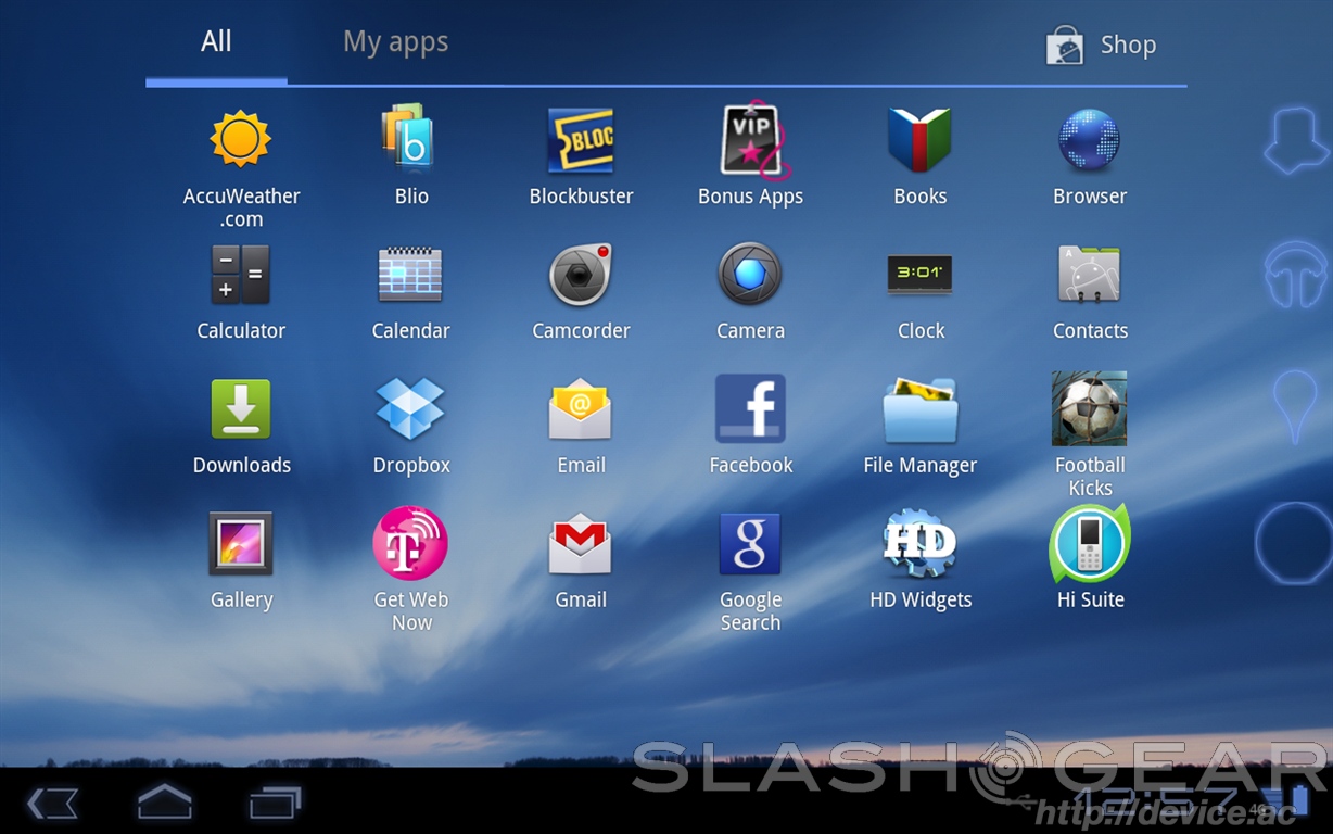 Powered by Android 3.2 Honeycomb the experience is very familiar and everyone should know plenty about Honeycomb already. Sadly we don't have Android 4.0 Ice Cream Sandwich but I expect that will come at some point in this tablets bright future. We do have a decent set of bundled applications and a few noteworthy ones are BlockBuster and Netflix, I think T-Mobile expects us to be streaming plenty of content over this bad boy, so enjoy it.