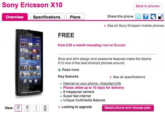 T-Mobile UK Get HTC Desire And SE XPERIA X10