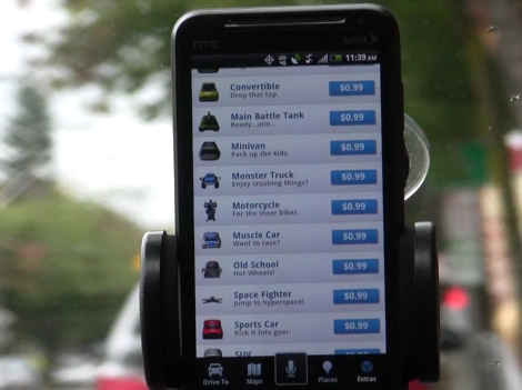 And goodies, yes there are goodies, including best of all, customizable car icons for your map. You can now be represented on your own map as a spaceship, a tank, a sports car, and more, all of these floating through the city with great ease. Each little car icon will cost you $0.99, how could you possibly resist? That said, all Android users with compatible devices will be getting the ability to download this update in the near future for free, with unlockable features like graphic lane assist, speed trap and red light camera notifications, and commute reports costing a total of $4.99 per month. Will you update?