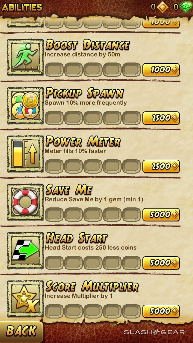 You'll be utilizing left and right swipes across your screen to turn, up and down to jump or duck (and slide), and a bit of the ol' tilting of your entire device to make sure you're on the right side of the path (or lack thereof). The graphics on this game are noticeably more complex, everything is just a bit more beautiful, and it's all ready for whatever iOS device you've got on hand, too, optimized for each screen and everything.