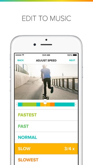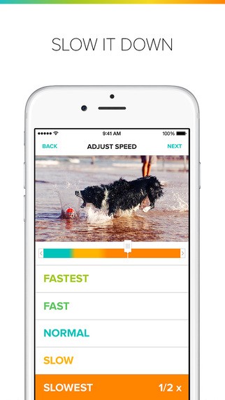 The concept is simple; rather than slip clips together to make a collage, you can edit your existing video based on speed. Play it at normal speed, then quickly transition to a super-slow or ultra-fast mode.