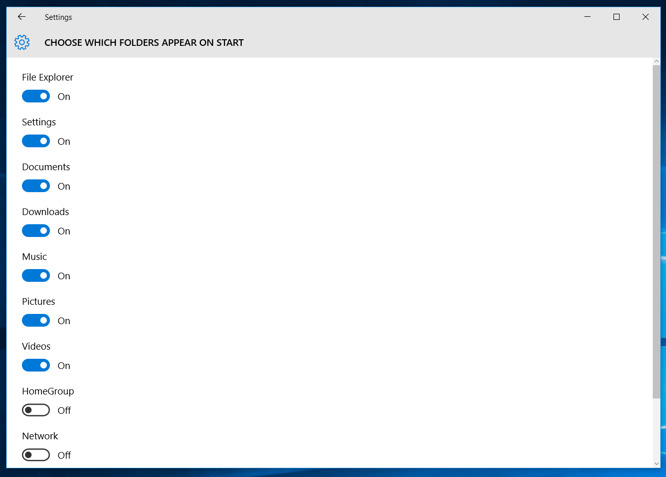 The left side of the Start Menu/Screen is now dedicated to more constant actions, like your most frequently used apps, a shortcut to File Explorer, Settings, Power actions, and, of course, your All Apps list. Some of these can be removed and some more can be added. Not interested in realizing that you play Candy Crush too much? Remove the Frequent Apps list. Want direct access to standard folders such as Documents, Music, and the like? Add one of them or add them all.