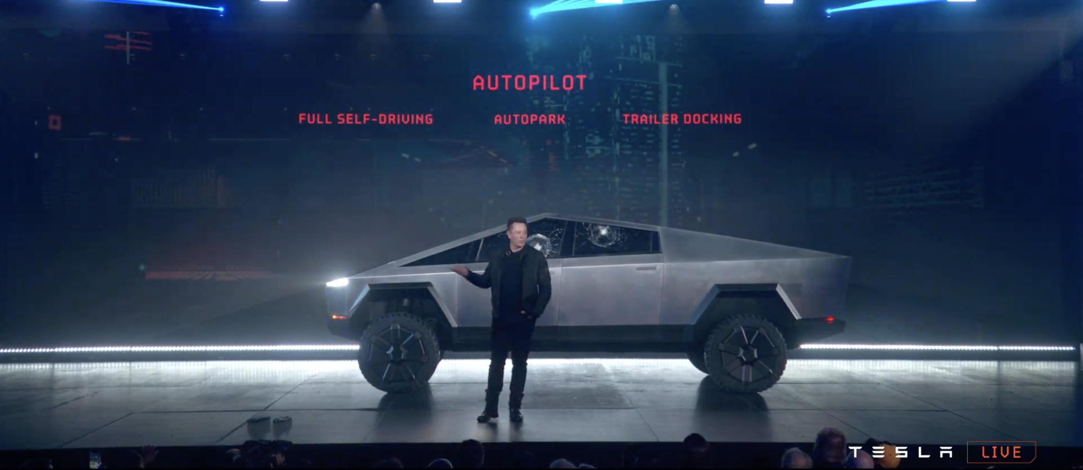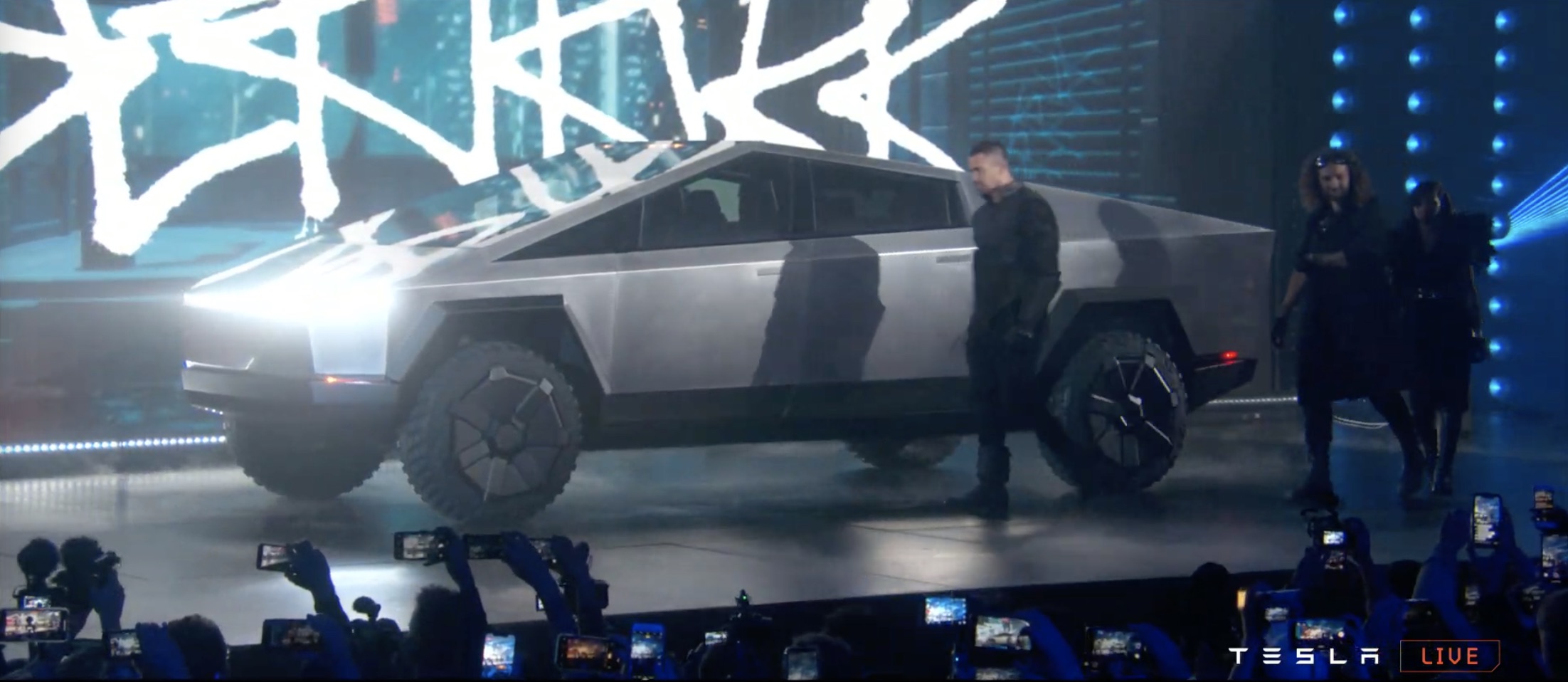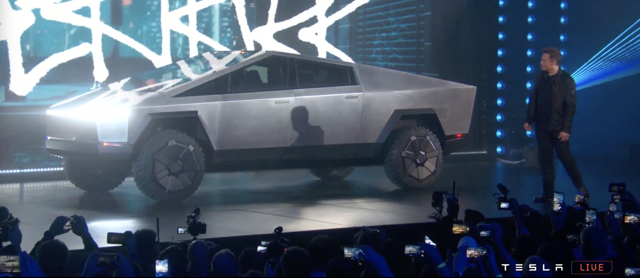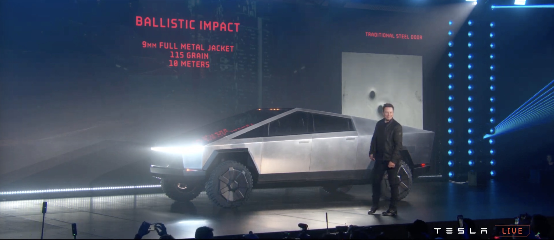 It's certainly like nothing we've seen before. The design is even more controversial than Elon Musk warned us it would be, a wedge-like chunk of sharp-edged stainless steel. The body, Musk says, is bullet-proof.