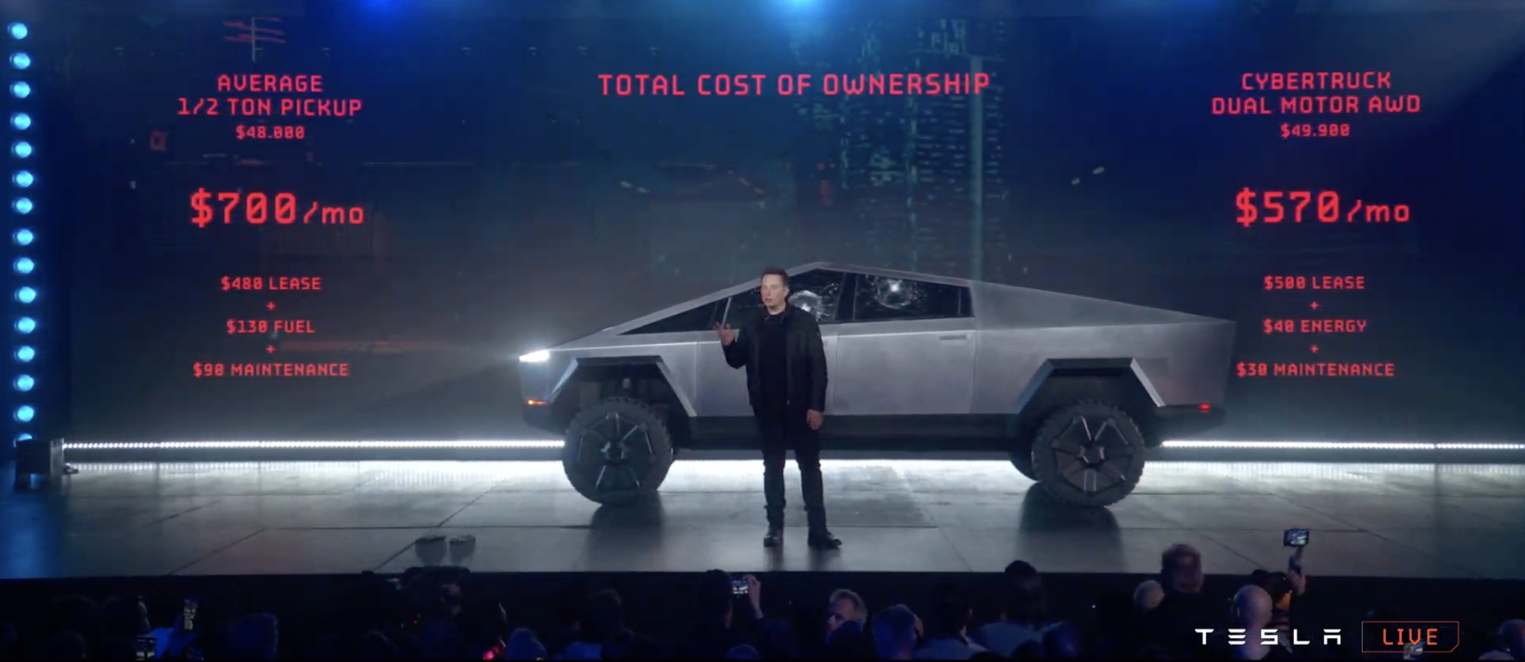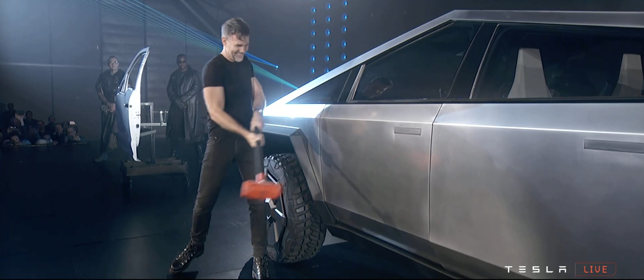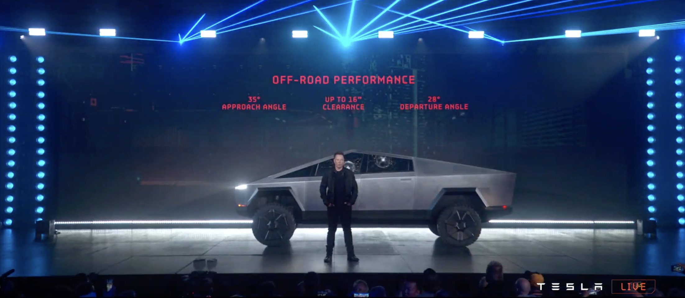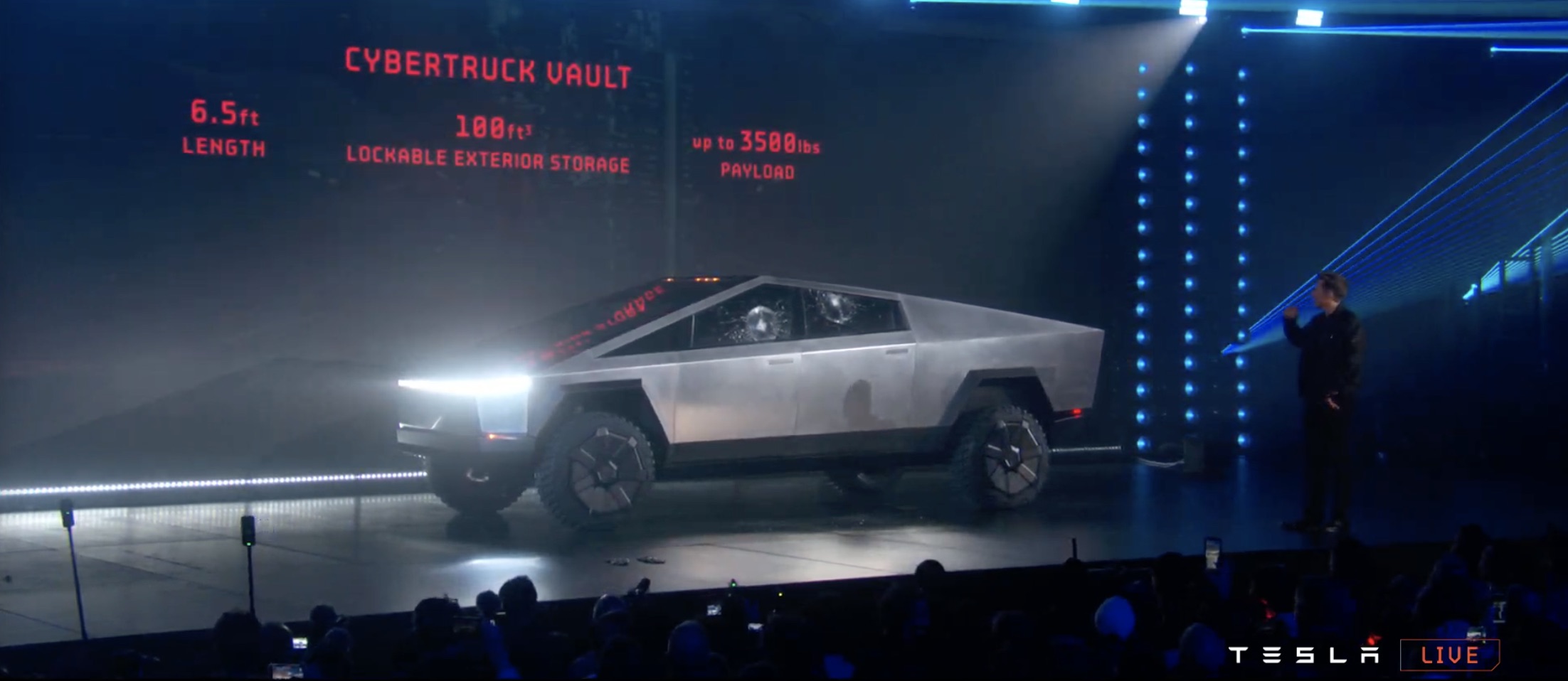 It's certainly like nothing we've seen before. The design is even more controversial than Elon Musk warned us it would be, a wedge-like chunk of sharp-edged stainless steel. The body, Musk says, is bullet-proof.