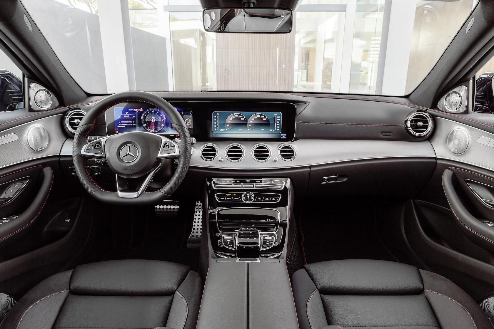 A flat-bottom sports steering wheel comes in black nappa leather with red stitching as standard, while the dashboard has AMG instruments and a 4.5-inch display embedded. That's on top of the E-Class' already excellent infotainment system.