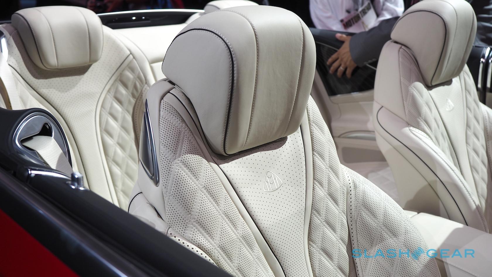 On the outside, there's Maybach badging and 20-inch exclusive forged wheels with a dichromatic finish. The same Maybach logo is projected onto the floor when the doors are opened. Compared to the regular S-Class convertible there's more chrome and a new front bumper, notably including a redesigned lower section. Get up close to the headlamps, and you'll find Swarovski crystals embedded in them.