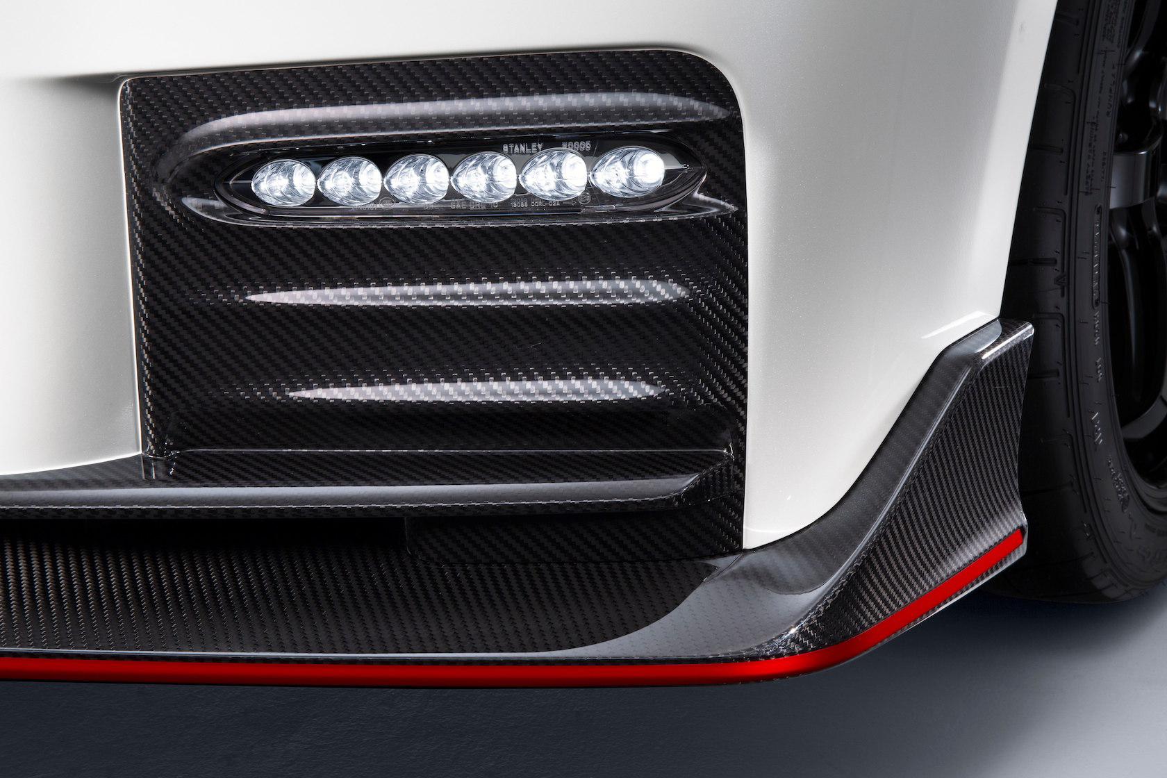 The larger, sharper grille of the standard 2017 GT-R has been kept, along with the more-reinforced hood, but the NISMO team has thrown in a new front bumper. That's made up of layers of carbon-fiber sheet, overlapping to create a stiffer component altogether.