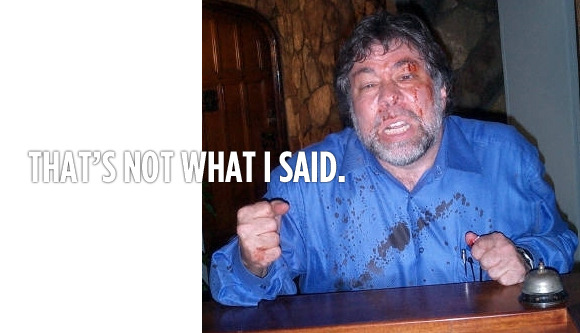 Ruh Roh! Remember this morning when the news was that Steve Wozniak said Android would win the smartphone wars. Turns out he was totally misquoted! He spoke with our pals over at Engadget today and gave them a quick interview clarifying, saying the he gave the De Telegraaf and they sort of misconstrued what he said. Instead, he did "lightly prognosticate" that Android might become more popular "based on what [he's] read" but that he believes Android "to be a lot like Windows... I'm not trying to put Android down, but I'm not suggesting it's better than iOS by any stretch of the imagination. But it can get greater marketshare and still be crappy."