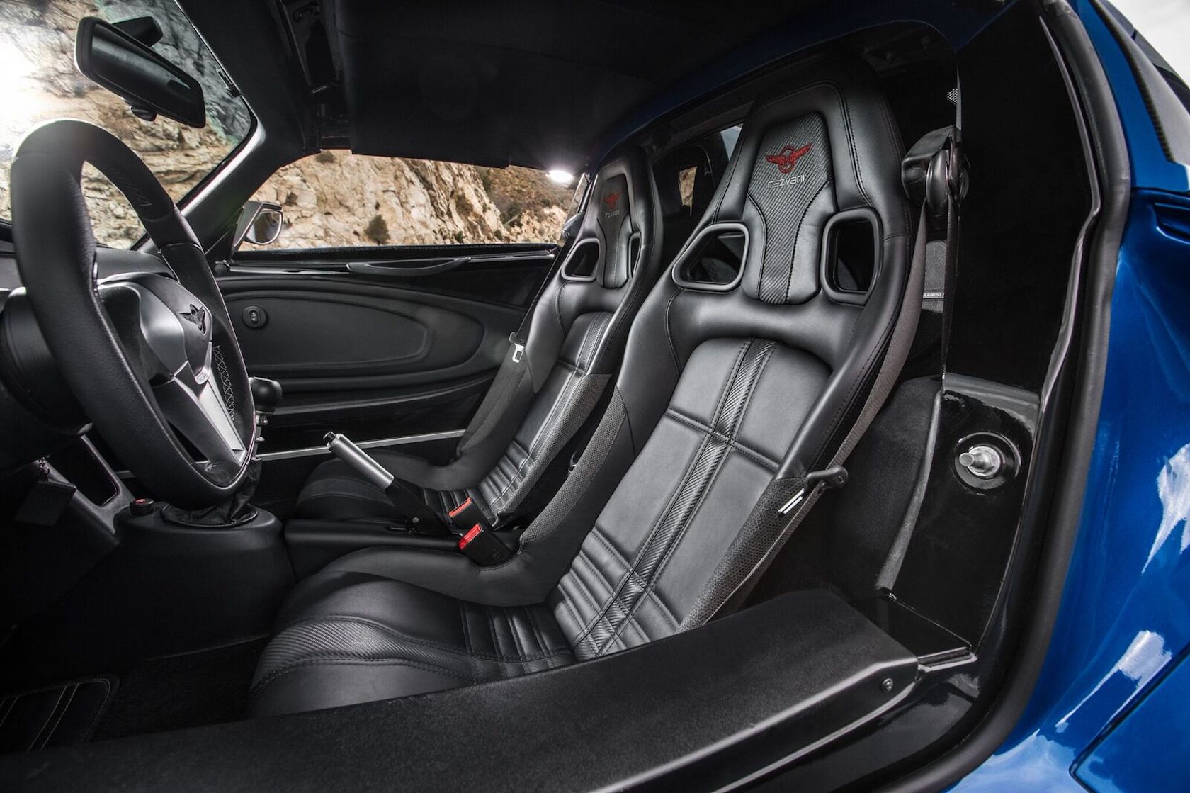 It's in no small part down to the light curb weight of the targa-top car. Rezvani starts out with a "Lotus-derived" aluminum monocoque, around which it builds a completely carbon-fiber body. With the help of some lightweight 18- or 19-inch forged alloy wheels, the Beast Alpha tips the scales at a mere 1,950 pounds.