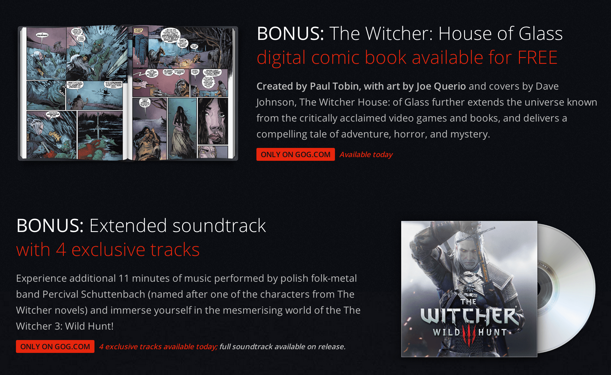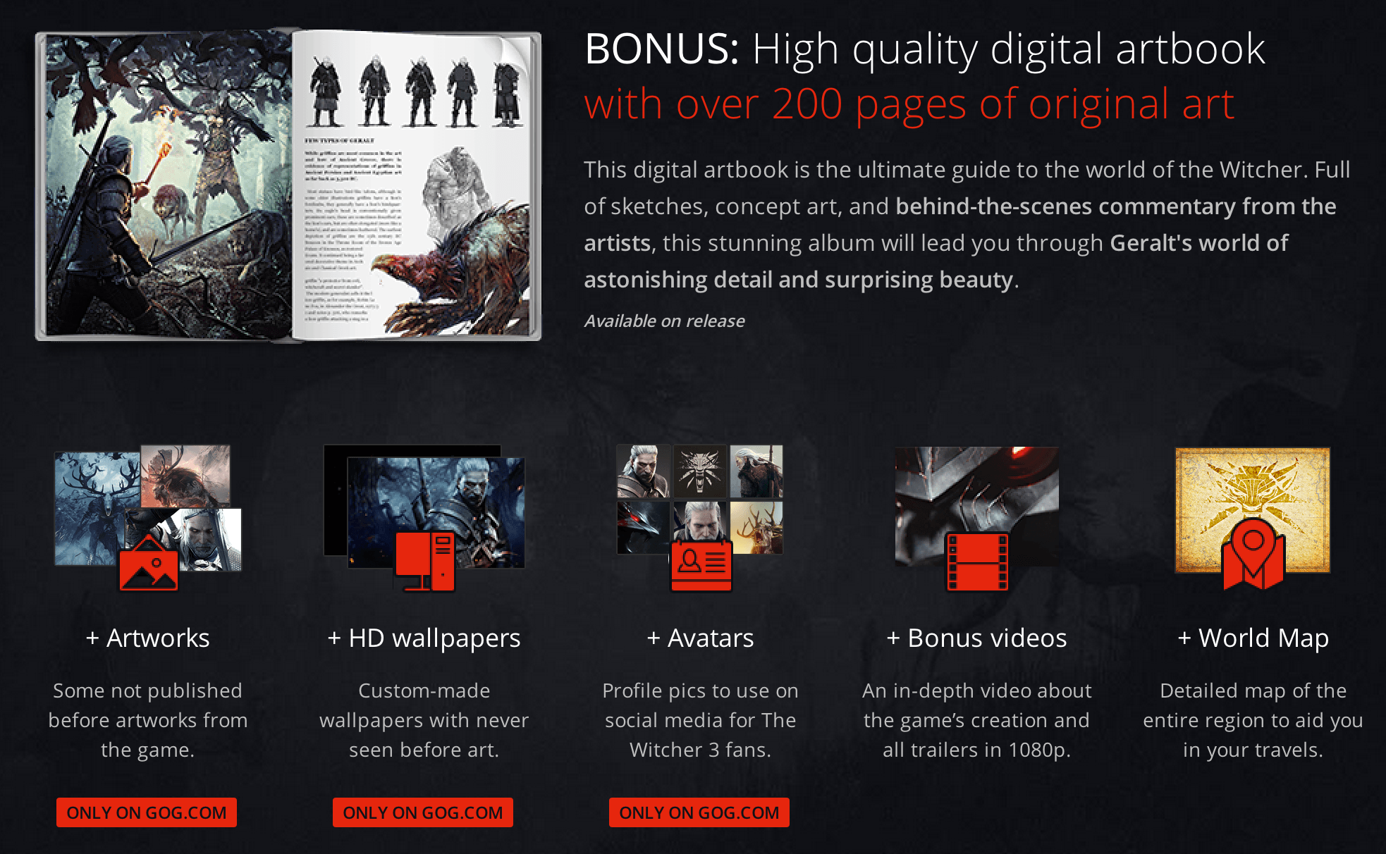 The Digital Edition will include DRM-free game plus pre-download. Digital art book, bonus videos, a detailed map, and a variety of oddities through GOG exclusively. The Digital Edition will be released for 5% off in a Loyalty Discount if you own the past two Witcher games.
