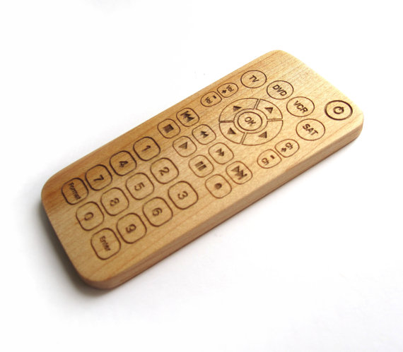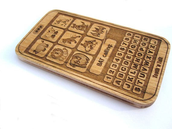 On top of the remote control, there's a Nintendo controller (in classic NES rectangle configuration with all the buttons and whatnot cut directly into the wood,) and a brand new smartphone that'll have your baby think he's iPhone tapping all day long. Of course you might have a bit of a time explaining the wooden nature of the device once he learns to speak, but that's a long time away, right? Have a peek at these devices in the creator's online store now: only $12 USD a pop!