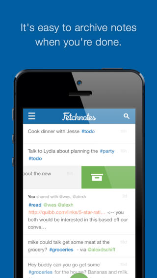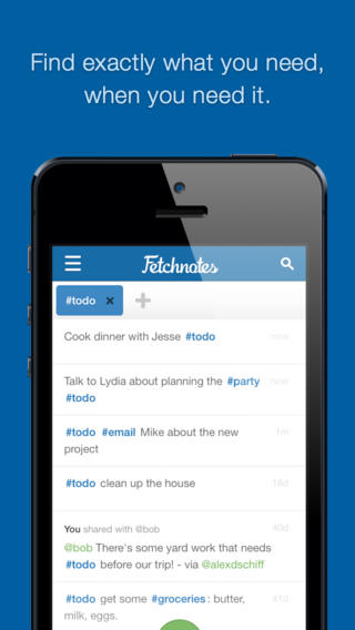 Fetchnotes brings context to your note taking, and is actually really easy to use. You can take down a note like would with any other app, but can then organize them via hashtags (create your own or use their preloaded suggestions). It's a lot like Pocket, wherein you create and control your own tags, and can access them later for better contextual control. Hammer out a note to find Halibut at the market, and tag it with #groceries. Next time you go shopping, just check on your tag!