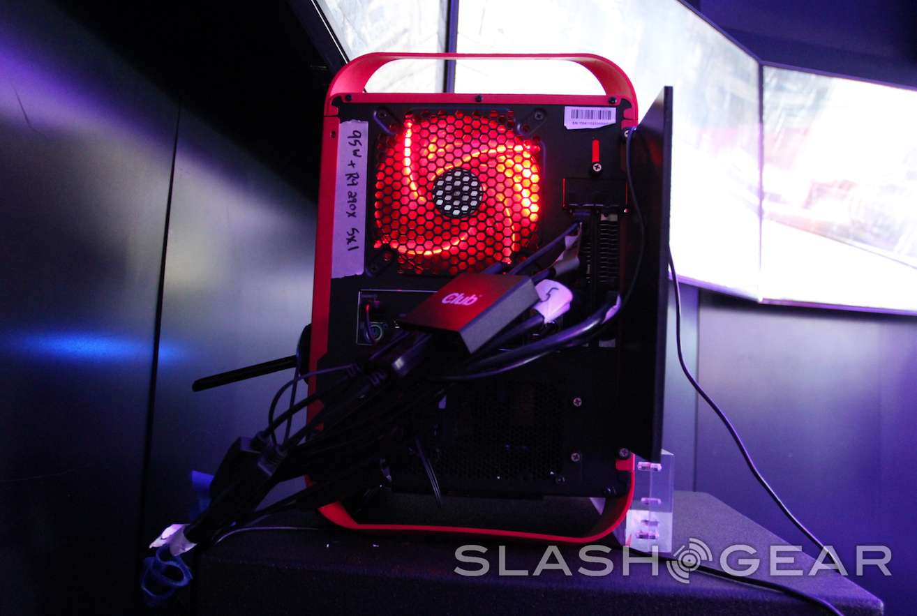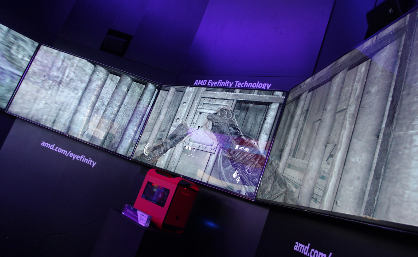 Just as we saw a massive multi-monitor showing off the likes of Project CARS earlier this week, here we're seeing the likes of the game Thief. Working with AMD's finest in a customized Webhallen case, it's not difficult to see the draw in working with a highest-end setup this week in the gaming space, especially when this industry's top competitors are pulling out all the stops on a demonstration tip.