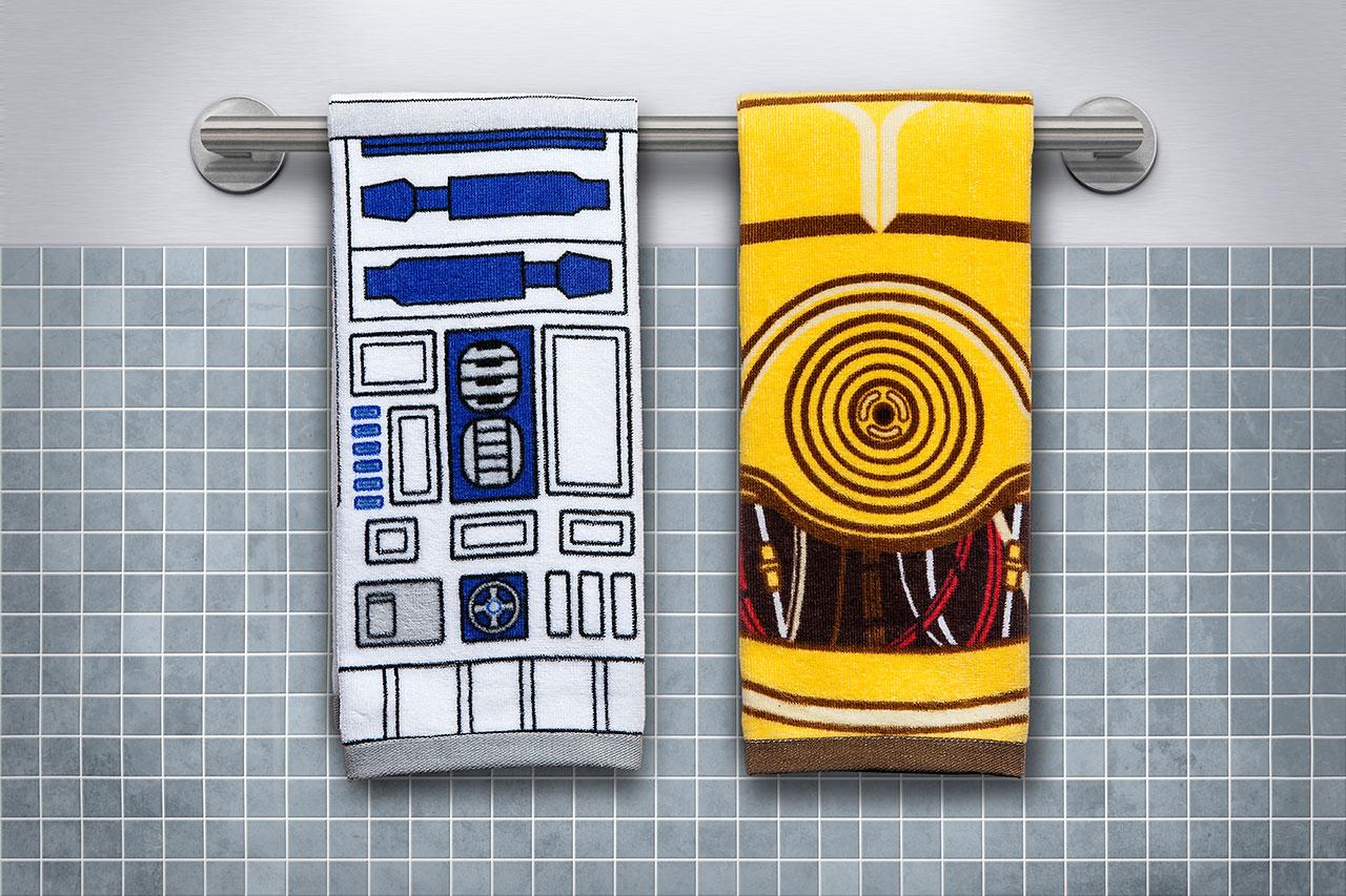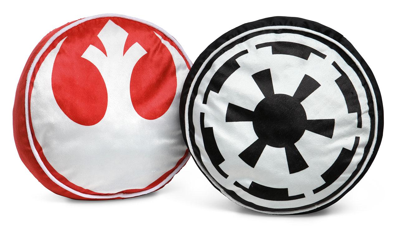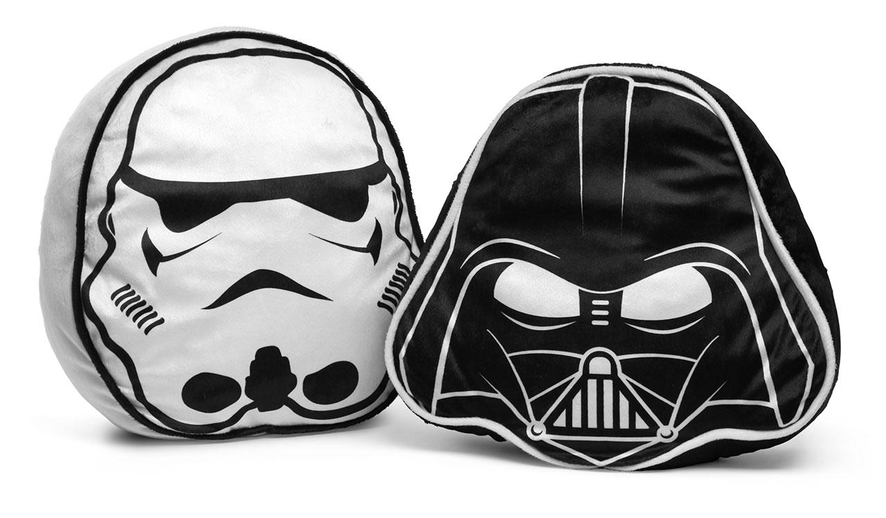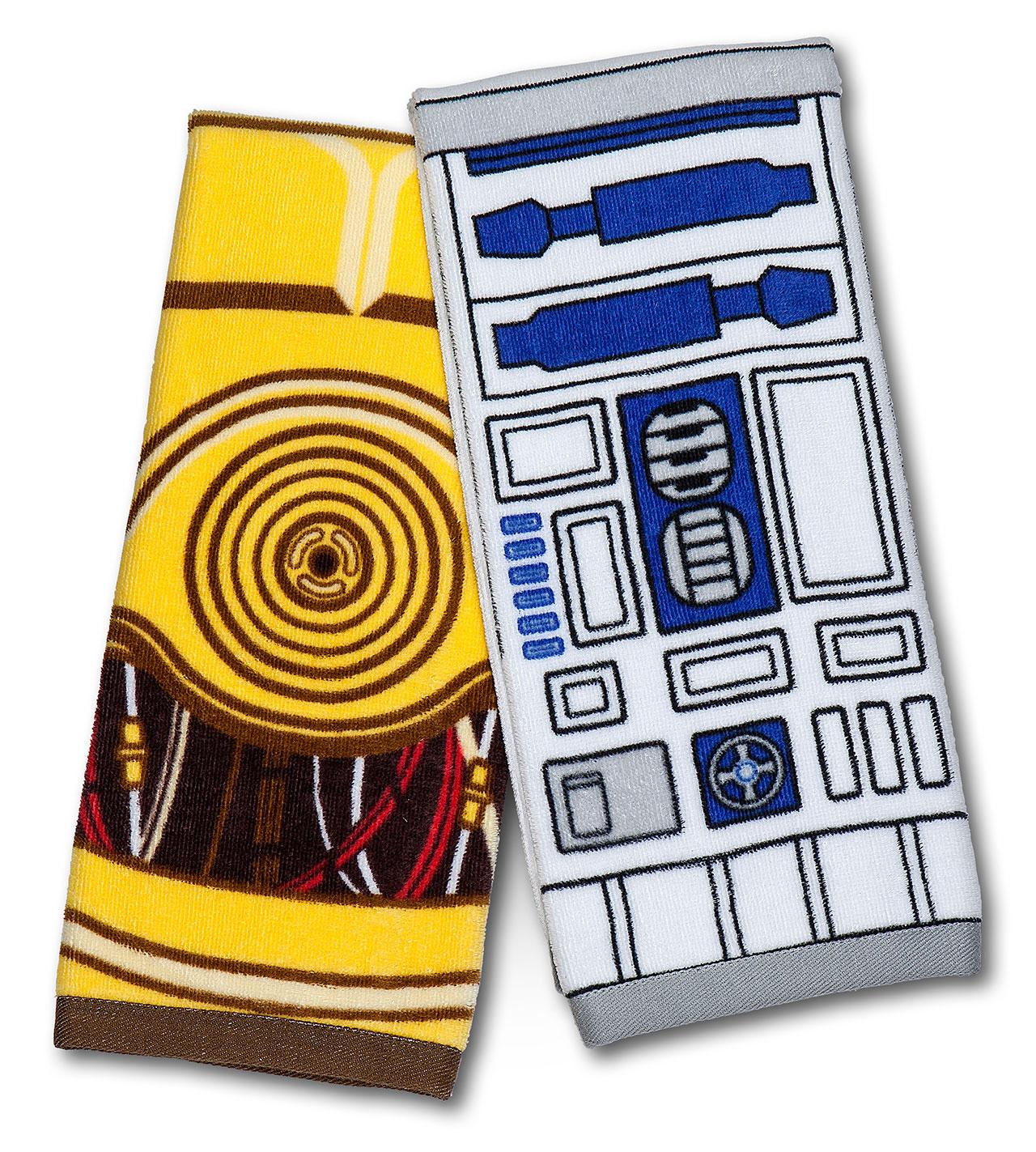 There's a Millennium Falcon serving platter, too – though this is the original Falcon, not the Falcon with the new dish, ironically. You'll find R2-D2 and C-3PO's bodies emblazoned upon a set of hand towels as well as a set of throw pillows. A set of original Imperial and Rebel symbol throw pillows and Darth Vader and Stormtrooper helmet throw pillows are here as well.