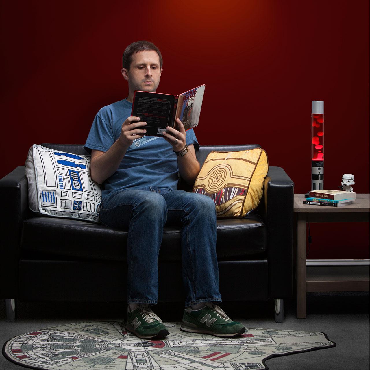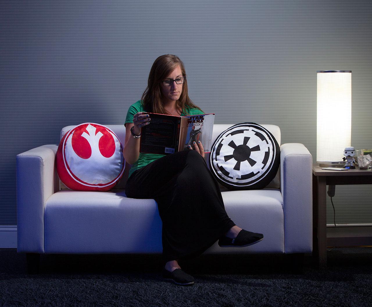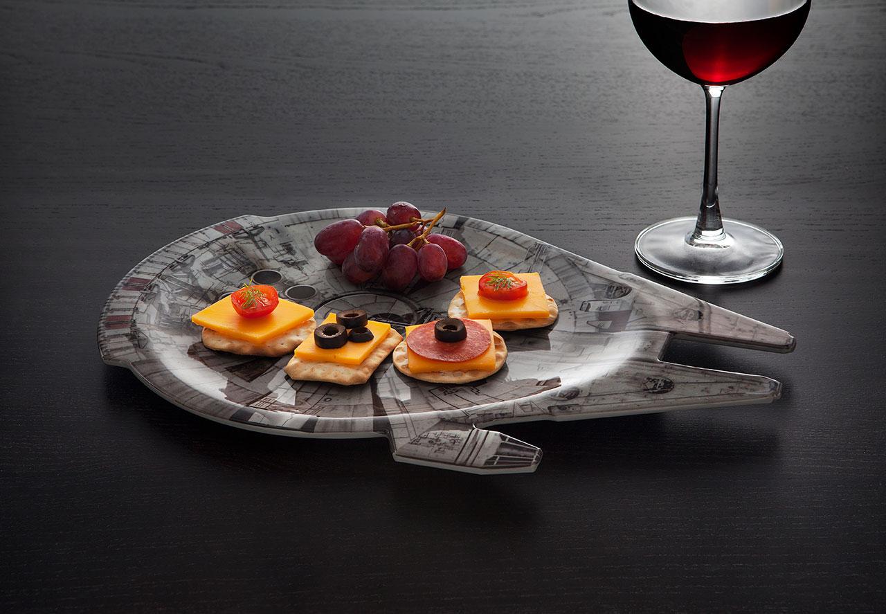 There's a Millennium Falcon serving platter, too – though this is the original Falcon, not the Falcon with the new dish, ironically. You'll find R2-D2 and C-3PO's bodies emblazoned upon a set of hand towels as well as a set of throw pillows. A set of original Imperial and Rebel symbol throw pillows and Darth Vader and Stormtrooper helmet throw pillows are here as well.