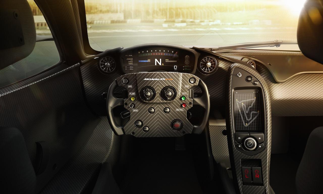 Since you probably don't want to be taking your hands away from that wheel too often, at least when whipping around a track, McLaren has clustered the primary controls there. Mode switches are in the center, adjusting the aero and other characteristics of the car, while the DRS and IPAS buttons are also on the wheel.