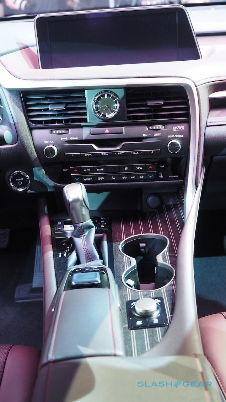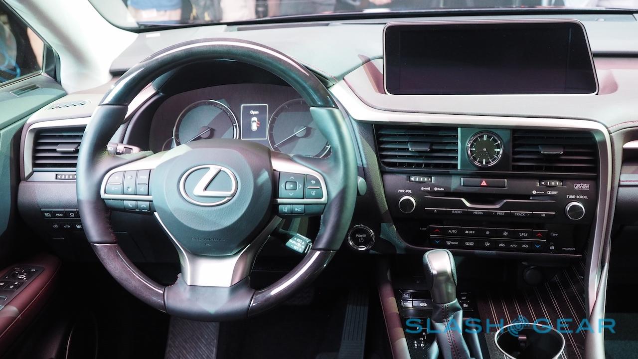 The result is the 2016 Lexus RX you see here. Despite looking a little smaller than the outgoing car, the new SUV has a 2-inch longer wheelbase for more internal space. Wheels are 18-inches as standard, but can be swapped for 20-inches if you prefer, and there are new LED fog lamps and LED daytime running lamps.