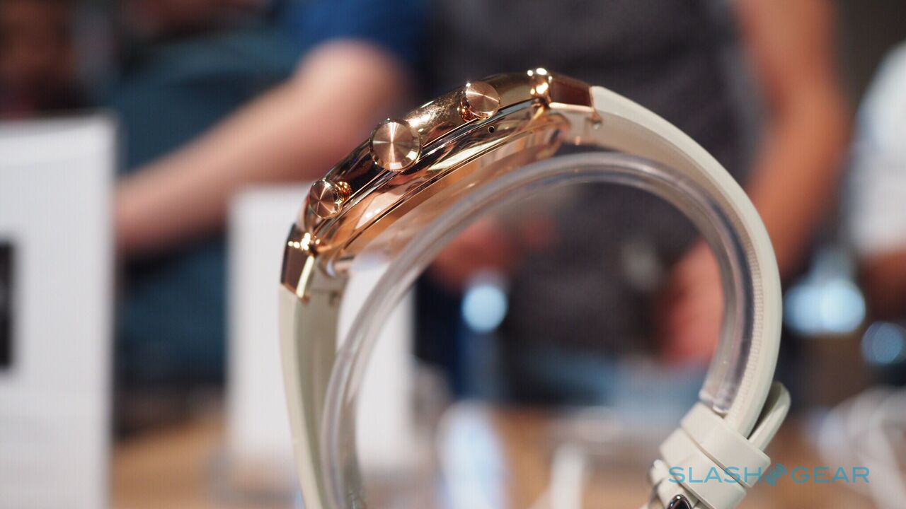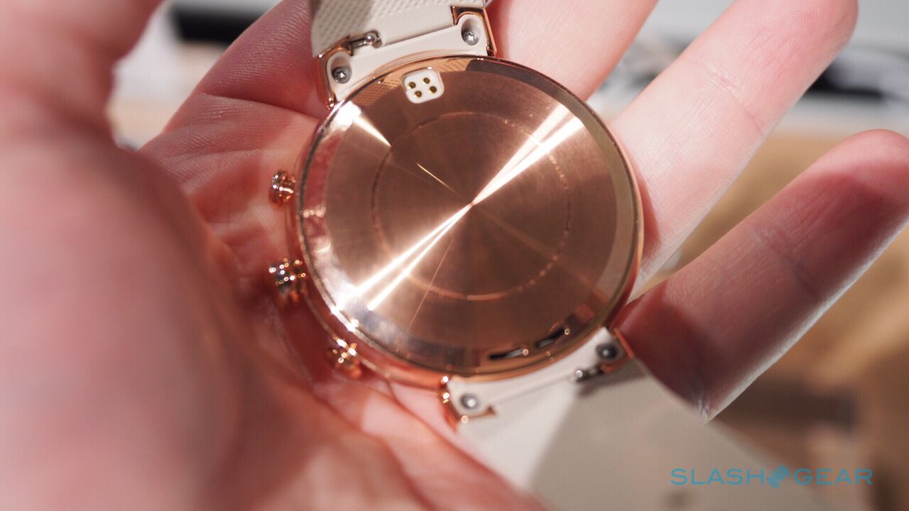 For watchbands, wearers will have a choice of stitched Italian leather in matching colors, or a high-quality rubber band in dark brown or beige. The customization continues with over 50 watch faces pre-installed, each with support for different widgets including weather data, step count, missed notifications, and more.