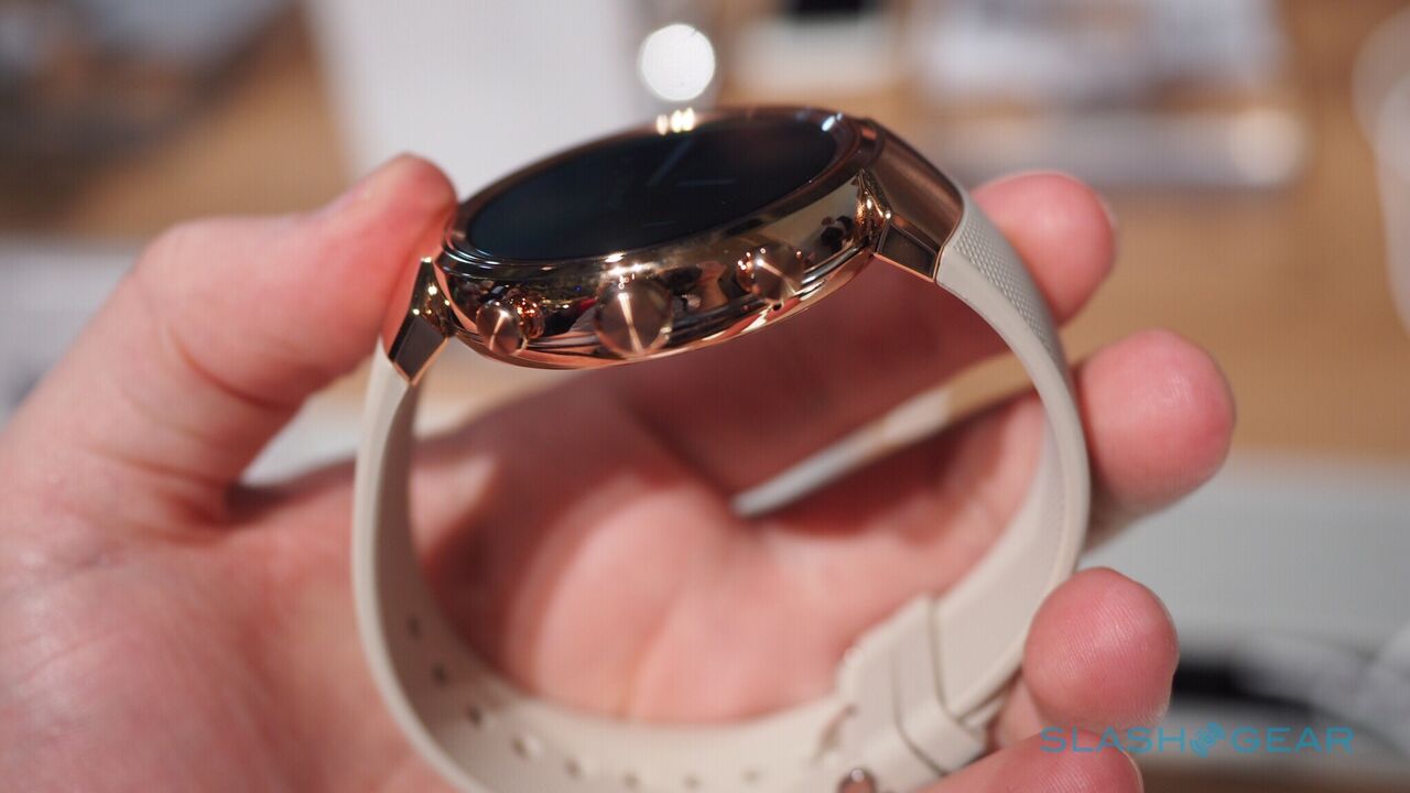 Inside the stainless steel case is Qualcomm's Snapdragon Wear 2100 processor. This powers the ZenWatch 3's 1.39-inch AMOLED display, which in turn is protected by 2.5D Corning Gorilla Glass. There are three color options — Gunmetal, Silver, and Rose Gold, while the case measures just 9.95mm thick and features a narrow rose gold bezel.