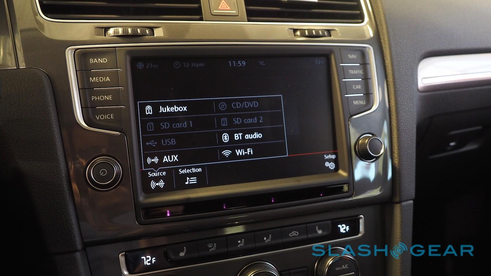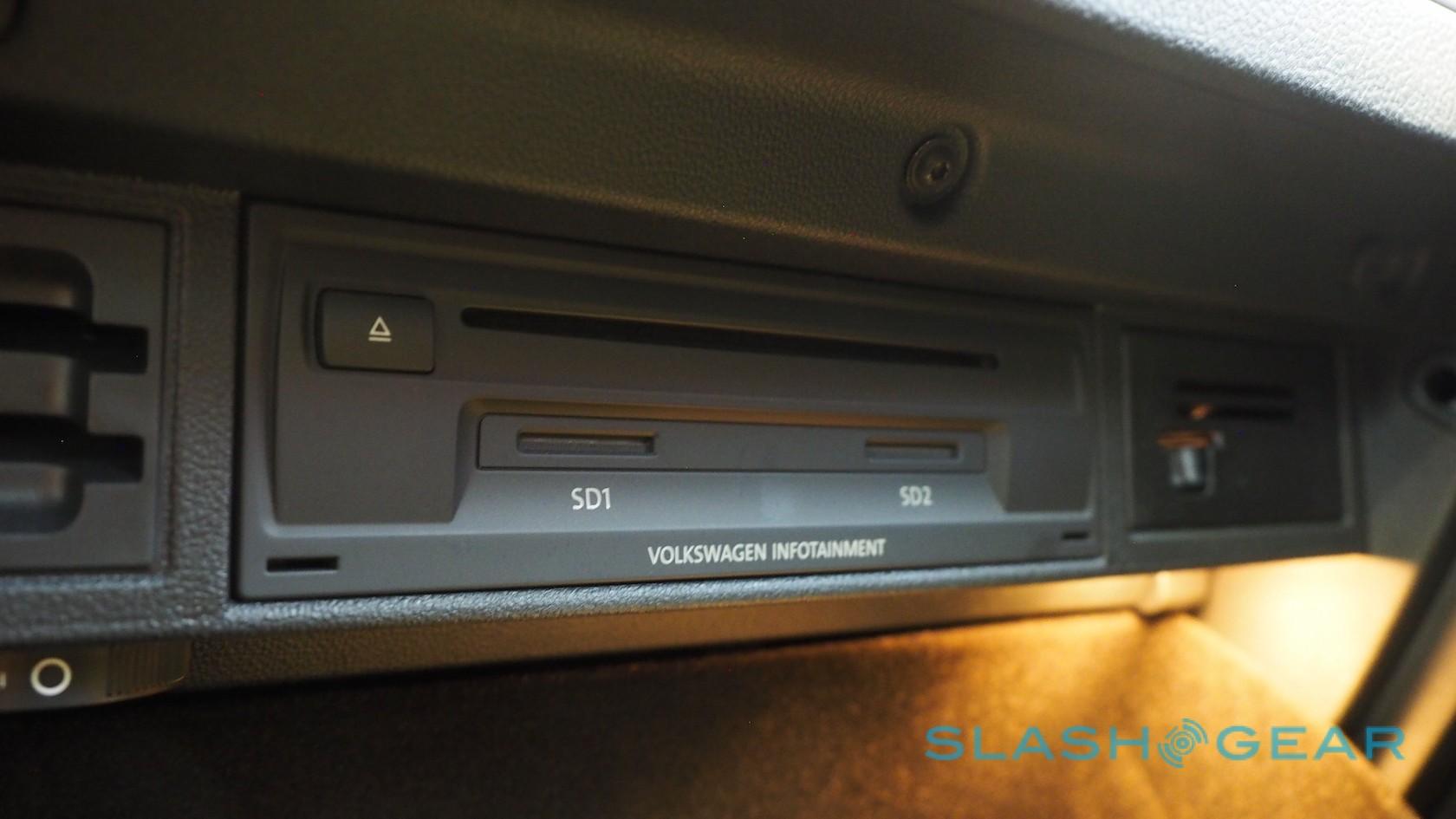 VW isn't quite ready to give up on physical media yet, though the Discover Pro does try to help you make the leap from CDs. There's a CD slot in the glove compartment, along with two SD card slots; the latter will allow you to copy digital music files to the 10GB of internal storage that VW calls the "Jukebox".