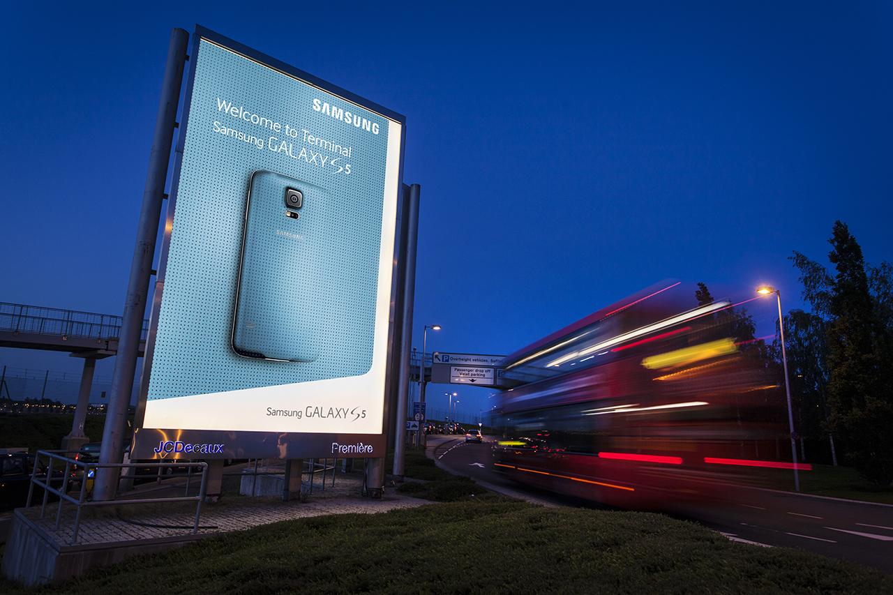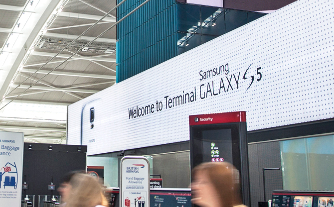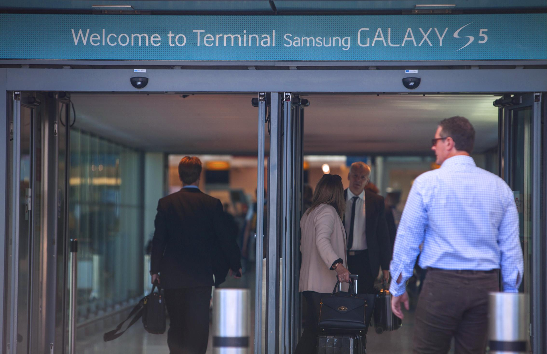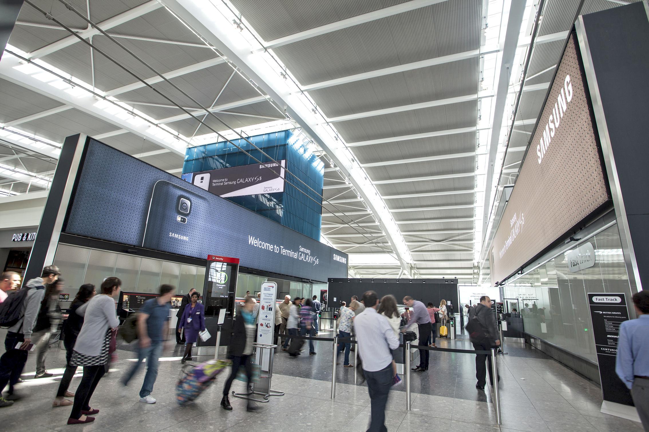 At Heathrow airport in London, Samsung has "taken over" what may be the world's busiest terminal. Purchasing the bulk of advertising area in the terminal, you'll see more Samsung Galaxy S5 posters and large signage per square foot here than anywhere else in the world. This campaign is set to stick around for two weeks.