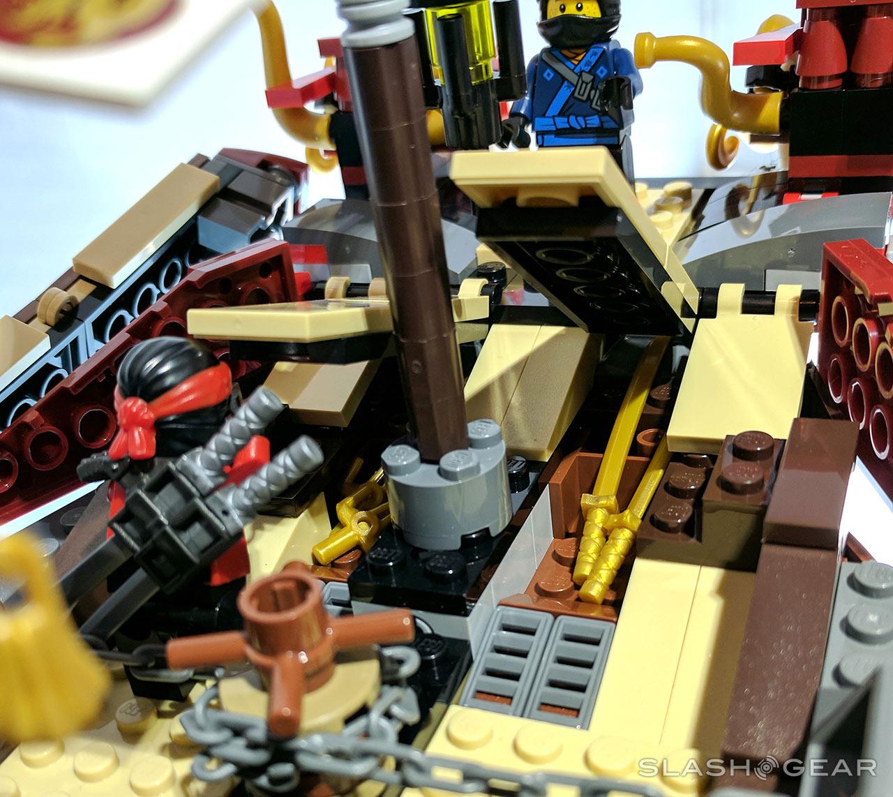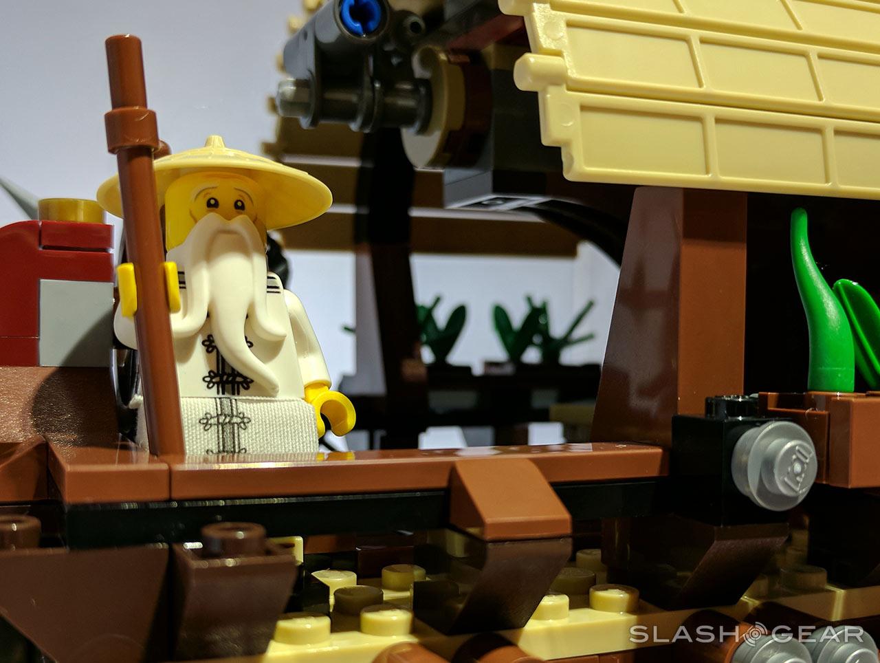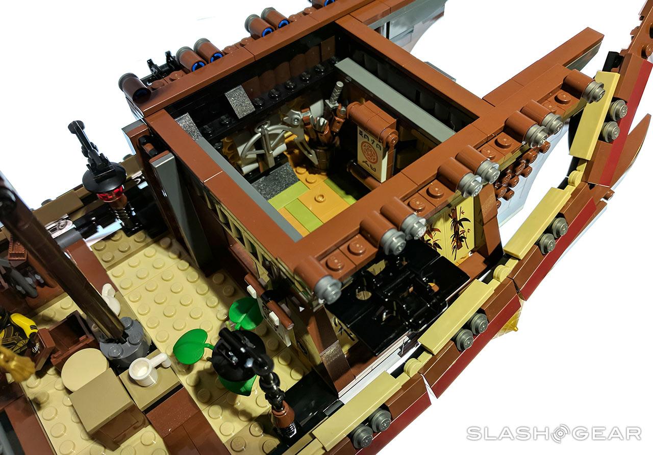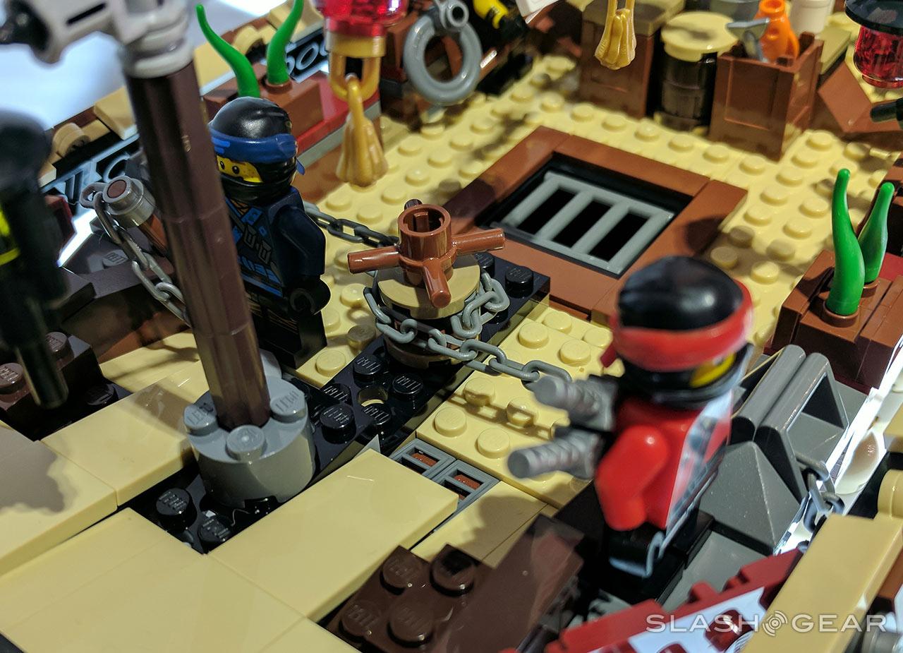 While there is one other set that's larger (Ninjago City), this ship exemplifies the film's content – and the content of the TV show at the same time. Unlike some smaller sets which include one or two main characters, this set contains the whole batch: Wu, Kai, Lloyd, Zane, Nya, Jay, and Cole. That's all the heroes, anyway.