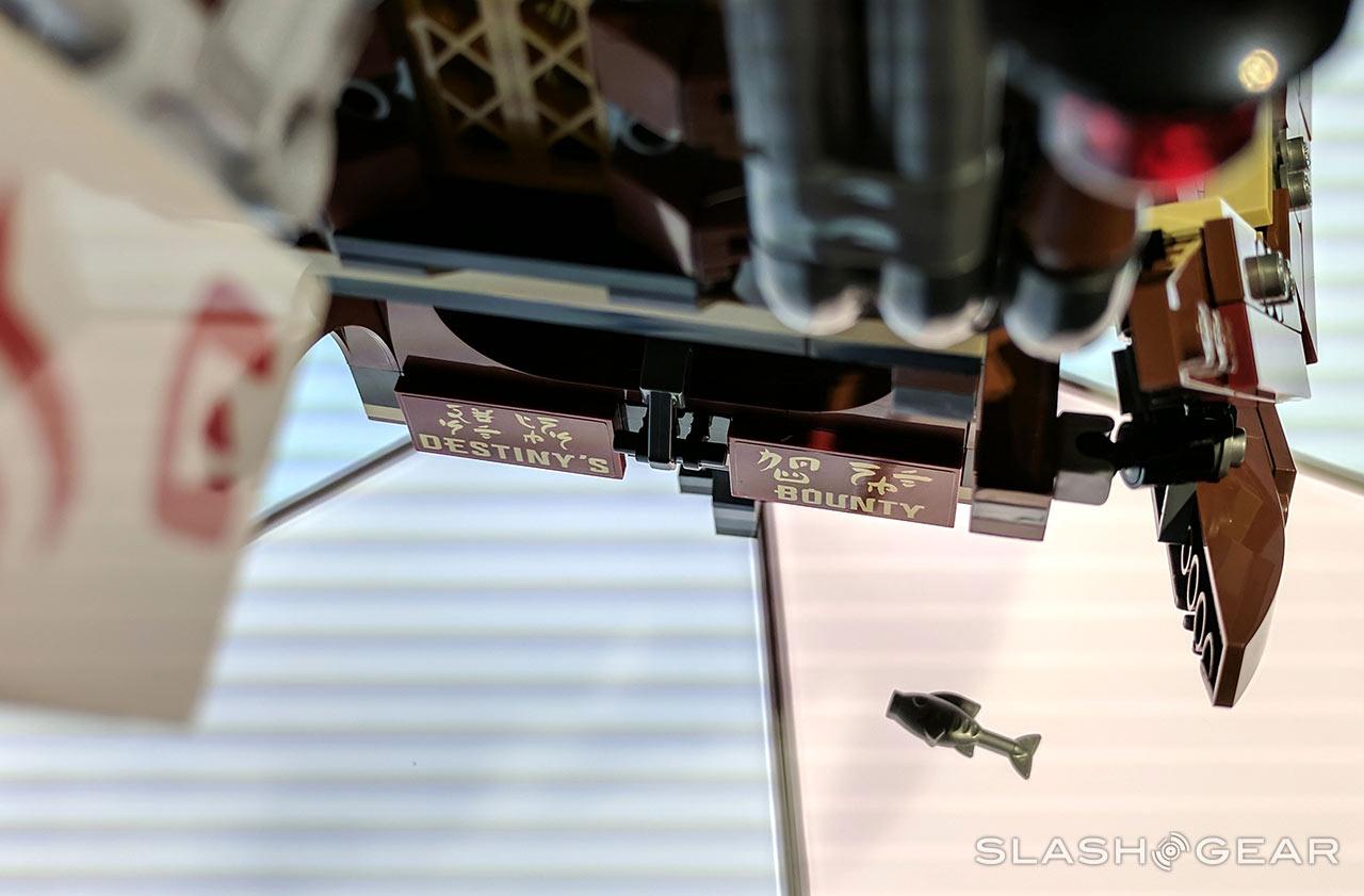 This is the Destiny's Bounty, and it's arrived at SlashGear just in time for The Ninjago Movie premiere. The Ninjago Movie is coming to theaters in the United States this weekend, and this ship aims to be the real-world representation of the main characters' flying skyship, containing the entire crew of 7 main character minifigs. Behold, this film's most iconic vehicle.