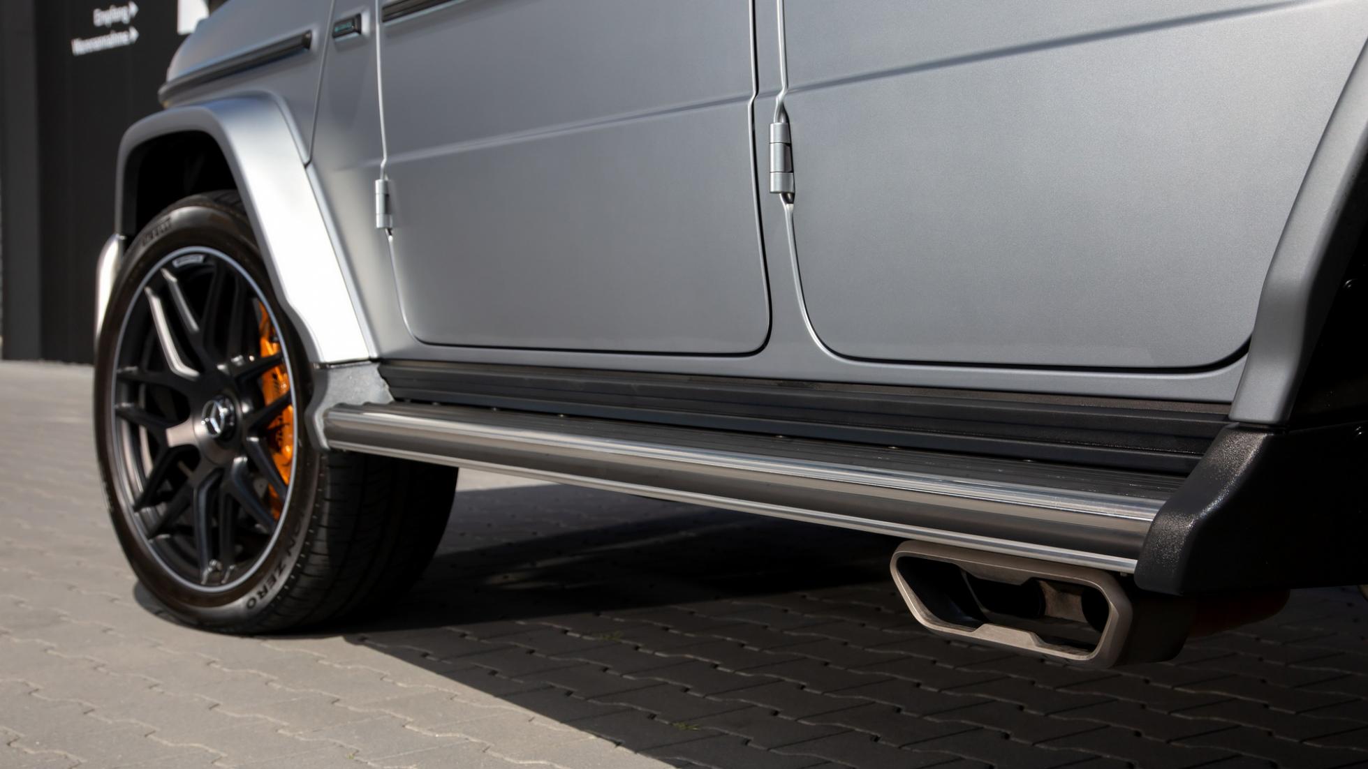 Right off the bat, it still pretty much looks like a standard Mercedes-AMG G63 apart from a new hood with carbon-fiber air inlets, some cool LED lights on the roof, and a bespoke front bull bar. It also comes with massive carbon-ceramic brakes to restore order amongst the chaos once you wind up 907 horsepower across the tarmac. We have no idea how much all of this costs, but it sure sounds like a ton of fun.