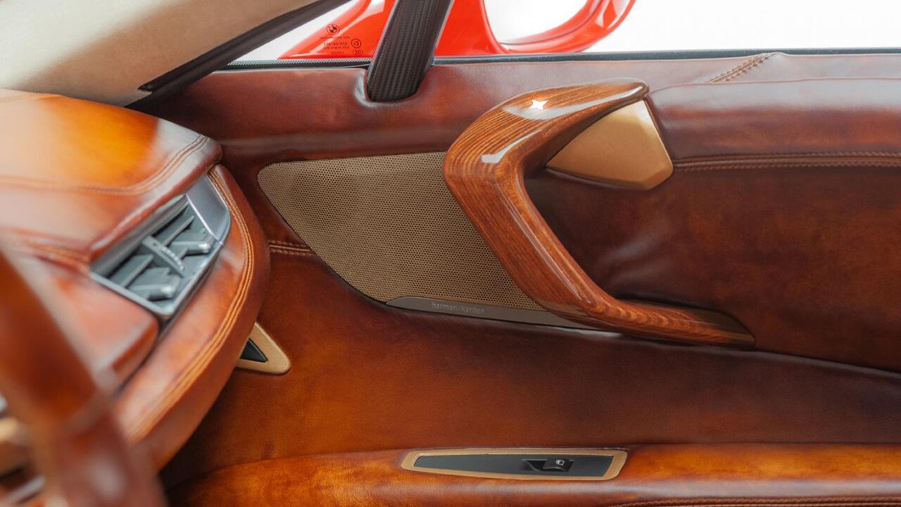 Look at it. It's like being cocooned in an antique shop. The i8's familiar dashboard layout remains, although the Berardo has a bespoke center console design. BMW has ceased production of the i8 since April of this year, but the Taraschi Berardo is making sure its spirit lives on.