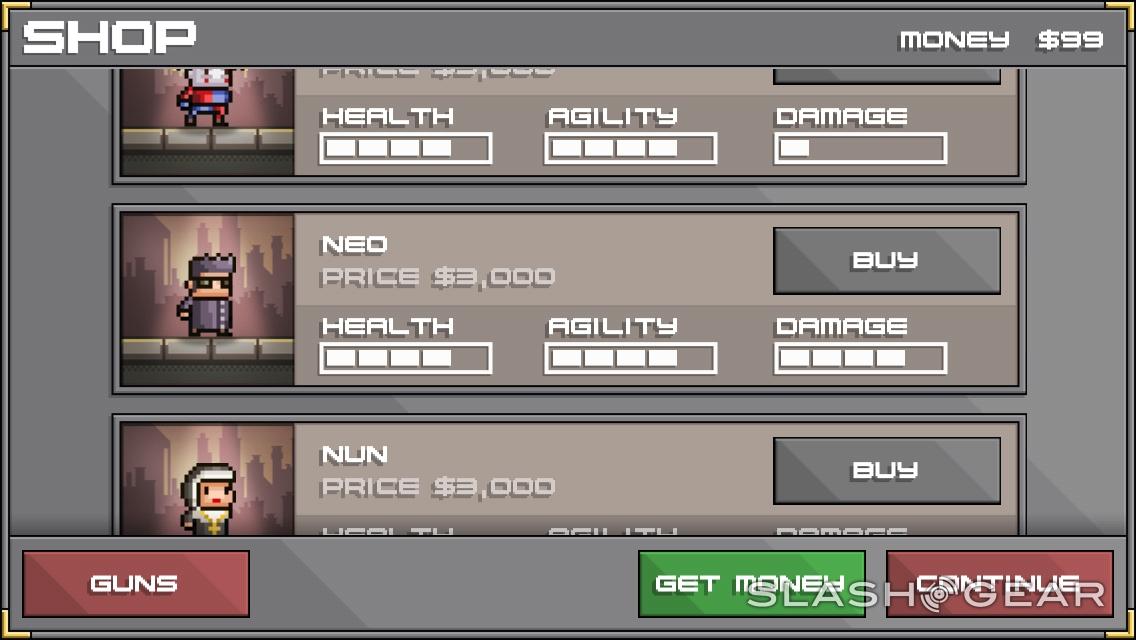 Then there's one masterful pixel-filled massacre of a game by the name of Random Heroes. This game is generally going to cost you a single dollar, but here you're running for free for a limited time with the full show: every one of your favorite off-brand pop culture heroes ready to take on the evil forces of evil from start to finish. This game has a style that's rather like a side-scrolling pistol-holding version of Super Crate Box – another pixel-happy gun-wielding beat-down game from a completely different set of developers.
