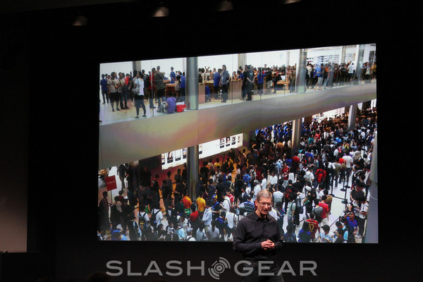 After reminding the crowd of the MacBook Air one year ago, 10 years ago for the iPod, and that today they'd be announcing additions to their mobile OS, apps, services, and hardware. Cook went on to speak calmly, yet excitedly about the several new stores they'd just launched, the Shanghai store being "absolutely gorgeous" and pulling in 100,000 visitors opening weekend. This compared to the LA location which took around a month to pull in the same number of people.