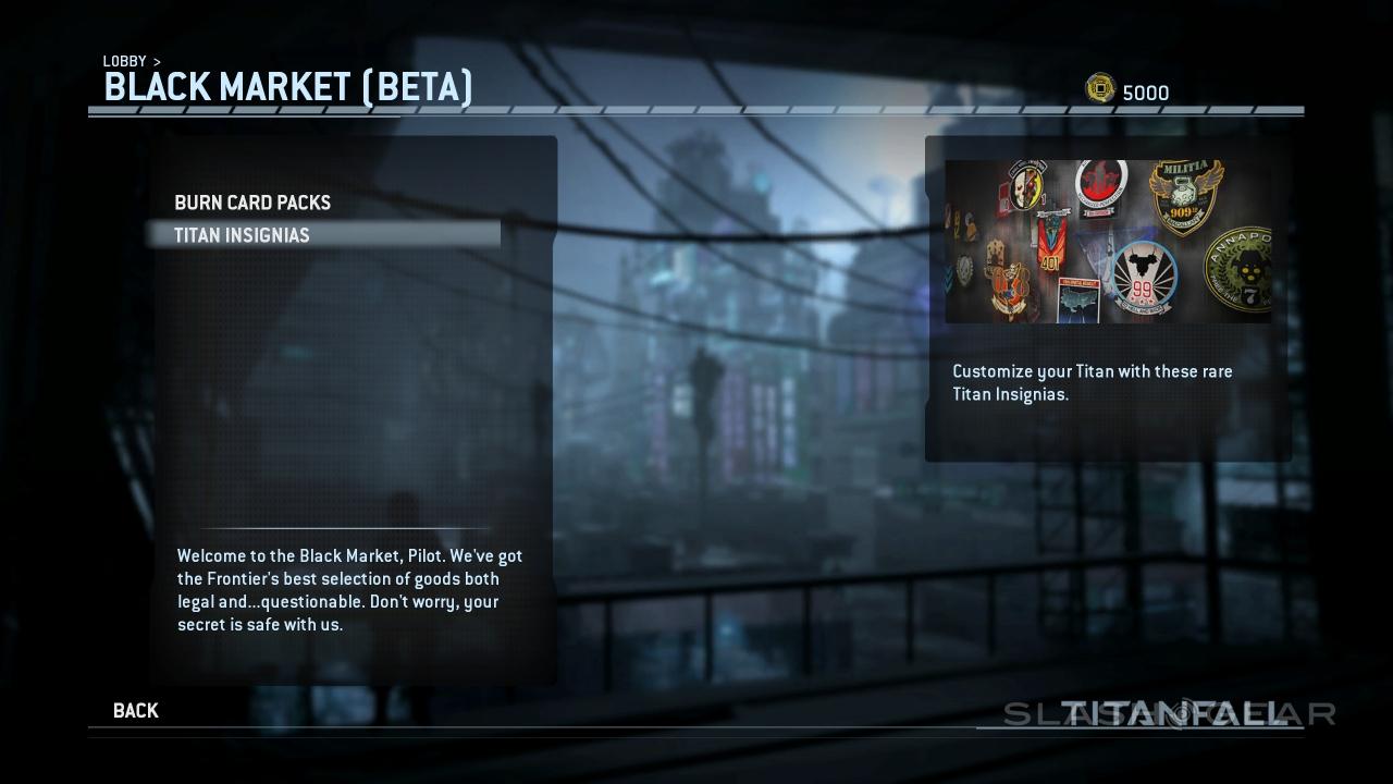 This isn't a bad memory of Diablo III. You're not going to be trading your items for real cash in a market on Titanfall's newest update (Update 5). Instead it's a simple system in which you're able to sell Burn Cards for credits and spend credits on Burn Card Packs and other oddities. It's actually kind of neat.