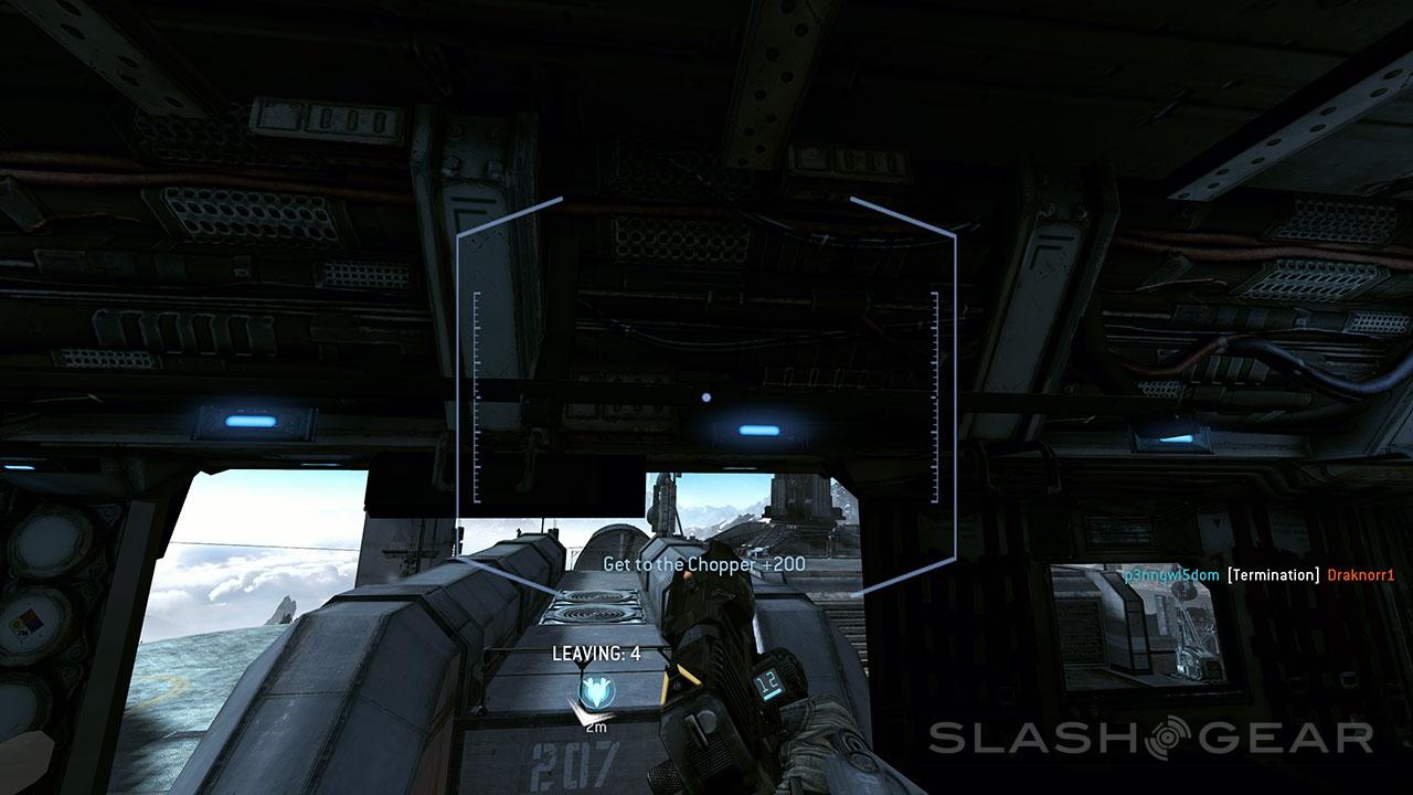 The first thing to strike us when starting up Titanfall as a Pilot was the fluidity of the motions involved in running, jumping, and switching between all manner of modes. Executing a double-jump or running up the side of a wall felt natural – it seemed as though the Pilot and Titan Training missions at the start were just exercises in surprising the user with ease of use cases in high-flying action.