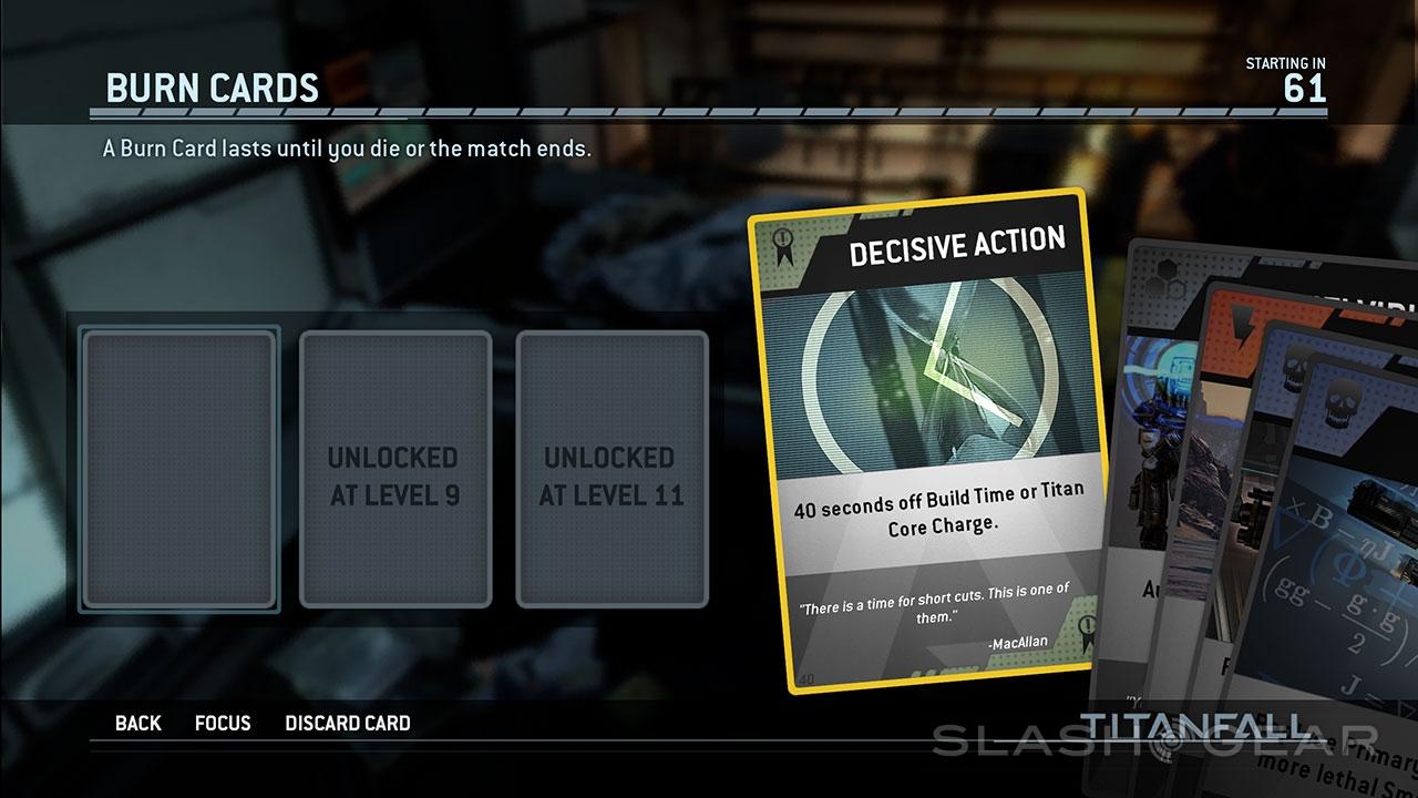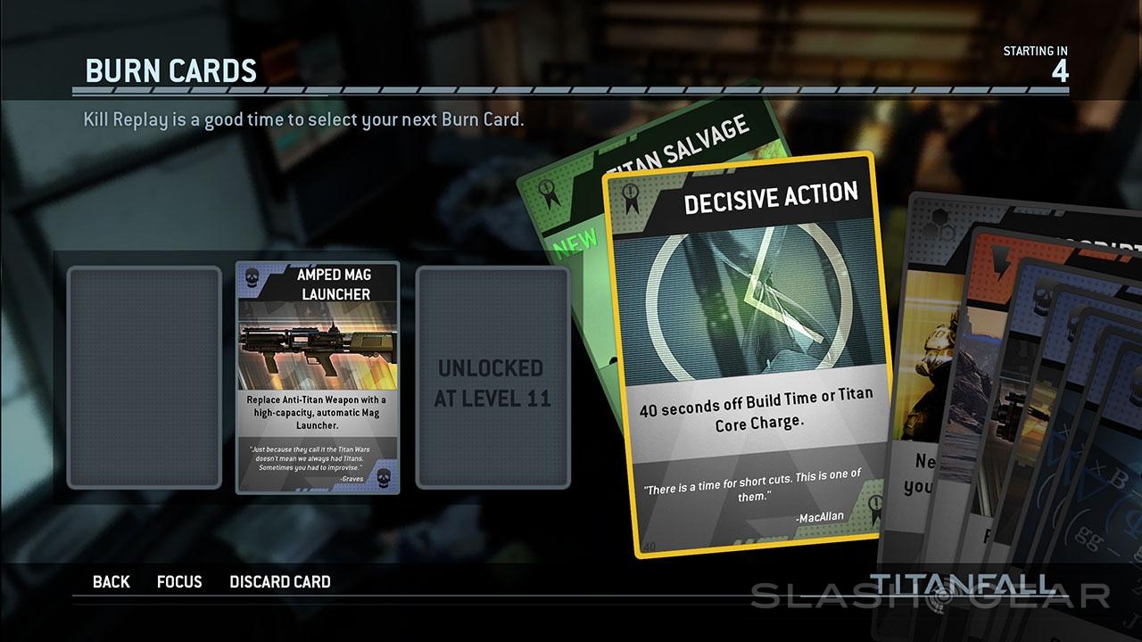 Burn Cards remind us that Respawn Entertainment are looking to make a name for themselves in the multiplayer arena. Where before you'd have been safe expecting the enemy to select from a pre-set number of classes and weapons, Titanfall adds an element of surprise in Burn Cards, usable once and forever disintegrating afterward.