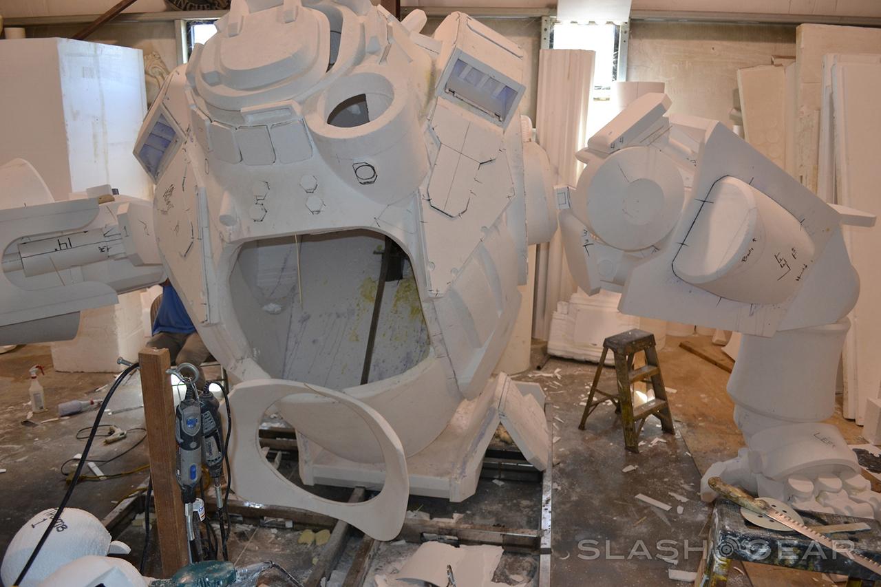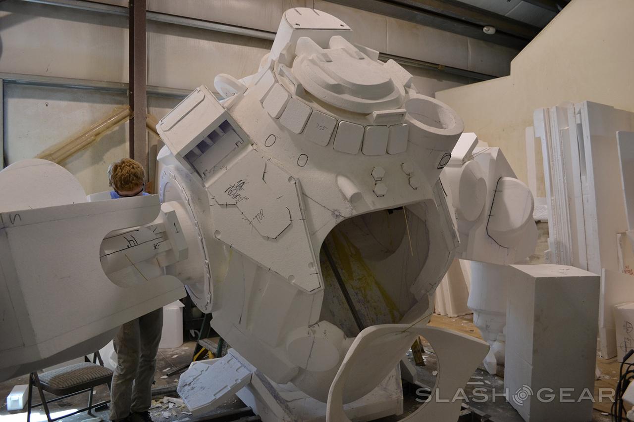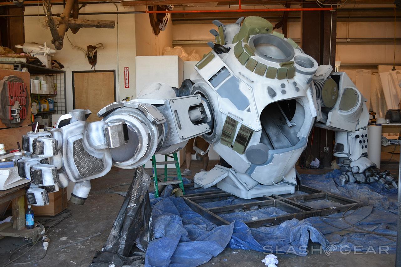 Having had some great response to our initial investigation into the creation of the 2-story-tall Titan touring Berlin this gaming season, we followed up with the makers at Daniel's Wood Land. The second model – and perhaps the more popular here in the USA since it's made several appearances stateside – is the "Reacher". This model is a bit shorter than the other due to its aim: capturing pilots for photo opportunities.