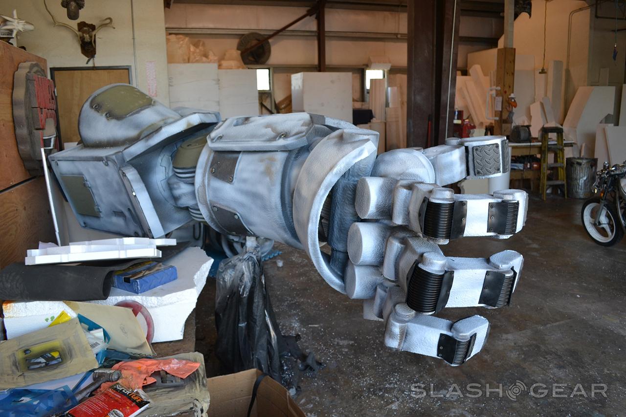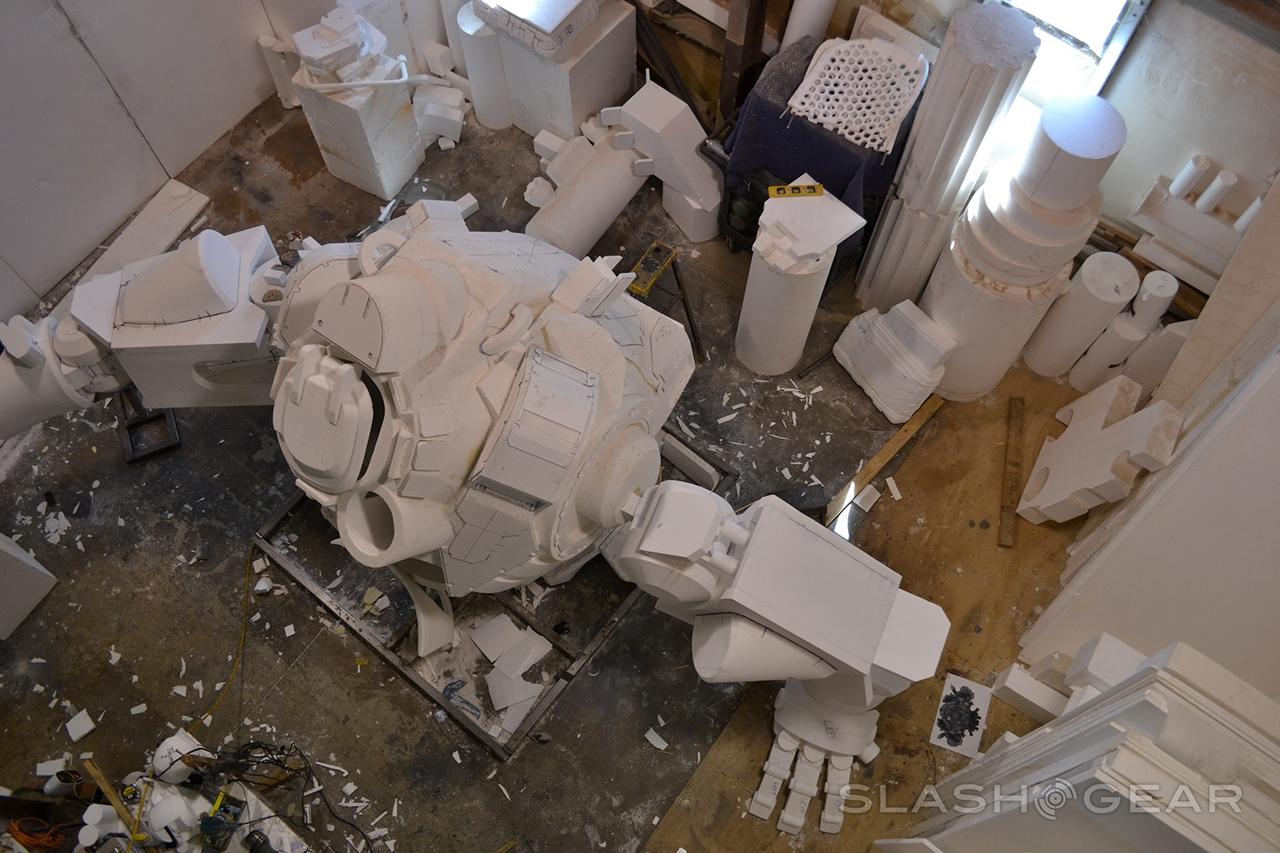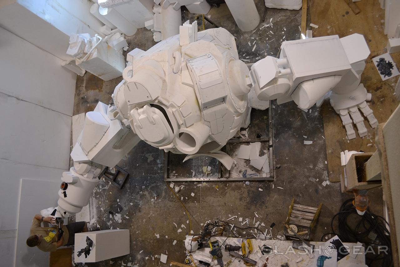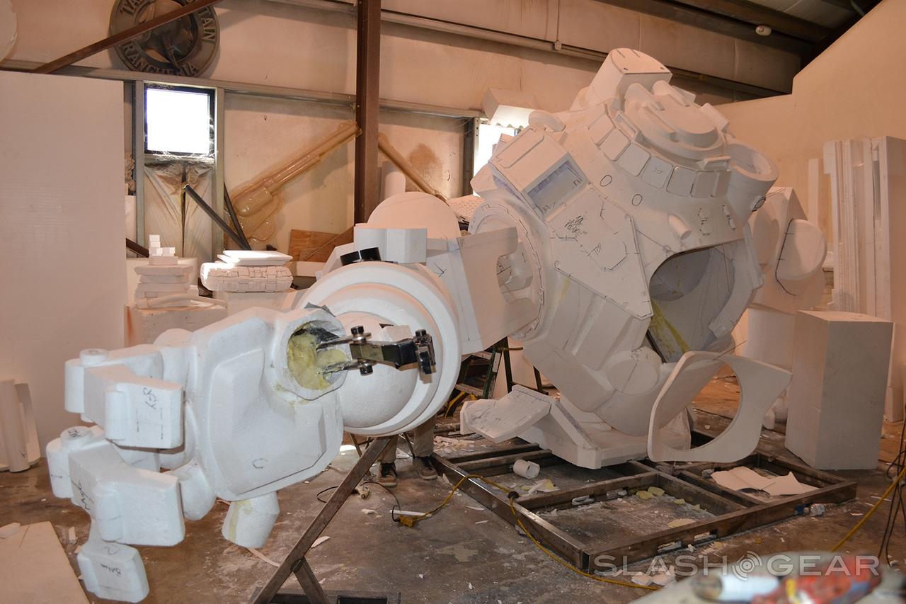 Having had some great response to our initial investigation into the creation of the 2-story-tall Titan touring Berlin this gaming season, we followed up with the makers at Daniel's Wood Land. The second model – and perhaps the more popular here in the USA since it's made several appearances stateside – is the "Reacher". This model is a bit shorter than the other due to its aim: capturing pilots for photo opportunities.
