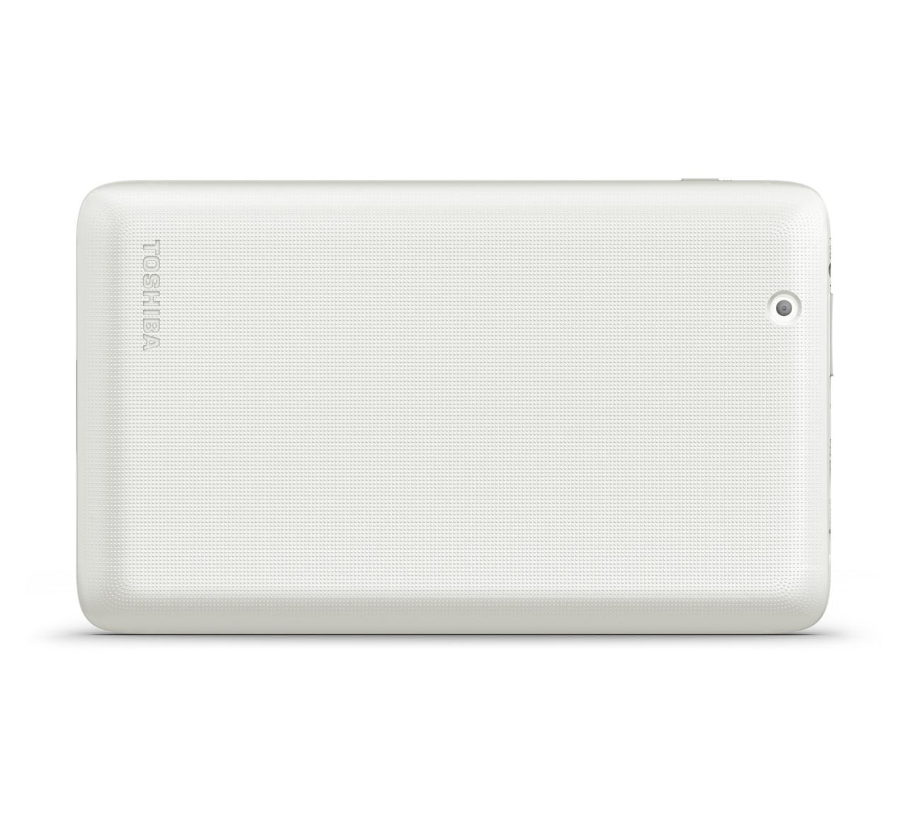 In terms of design, Toshiba went for a slightly rugged visage, with a textured white back cover for easier grip. The front bezels, however, are all in black. No other color option has been revealed. Toshiba claims that the 0.43 inch (10.9 mm) profile and 12.5 ounce (354 g) weight makes it ideal to stow into bags, purses, or even pockets, if necessary and big enough.
