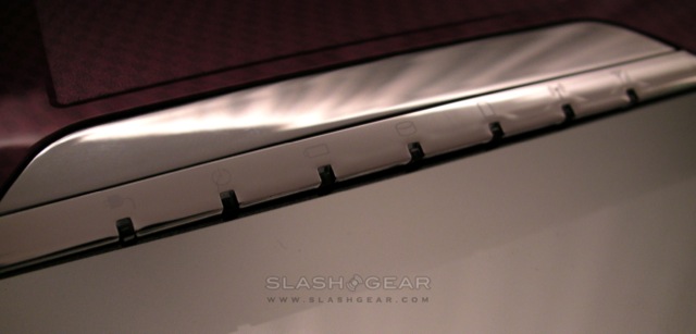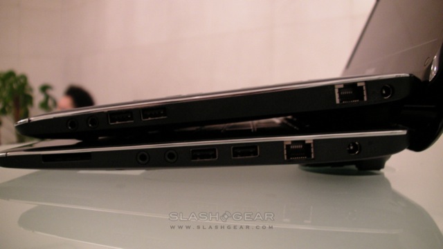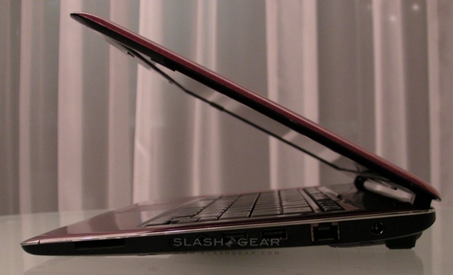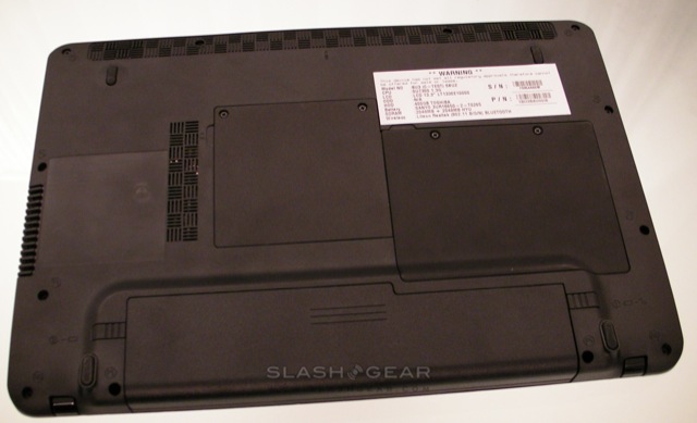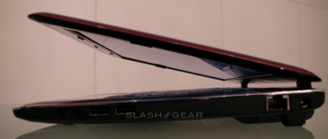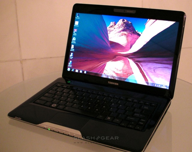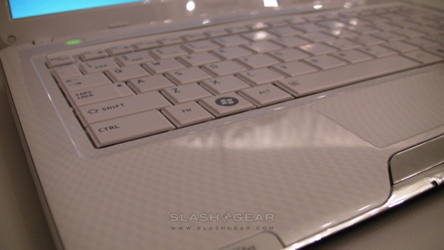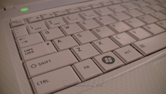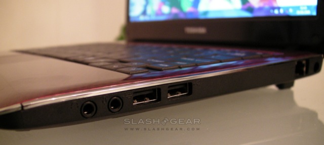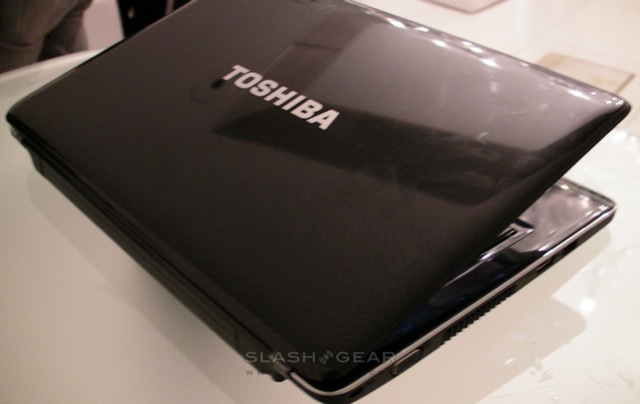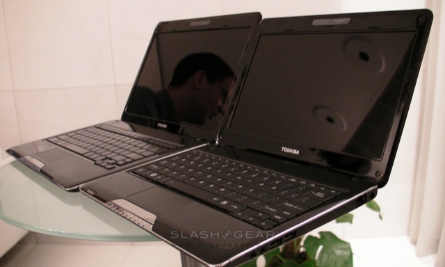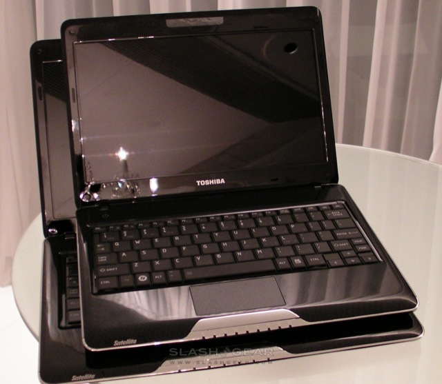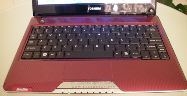 SlashGear had a chance to play with the new Windows 7 machines, and came away reasonably impressed. Build quality seems decent, and the keyboards show little flex and are well spaced, even on the smaller model. The displays are very glossy, however, and there was some slight lag on the Celeron single-core models Toshiba was showing. Battery life is tipped at up to 11hrs from the standard pack, which exceeds even Toshiba's own netbook range, though it does mean the base of the notebooks are not flush-fitting.