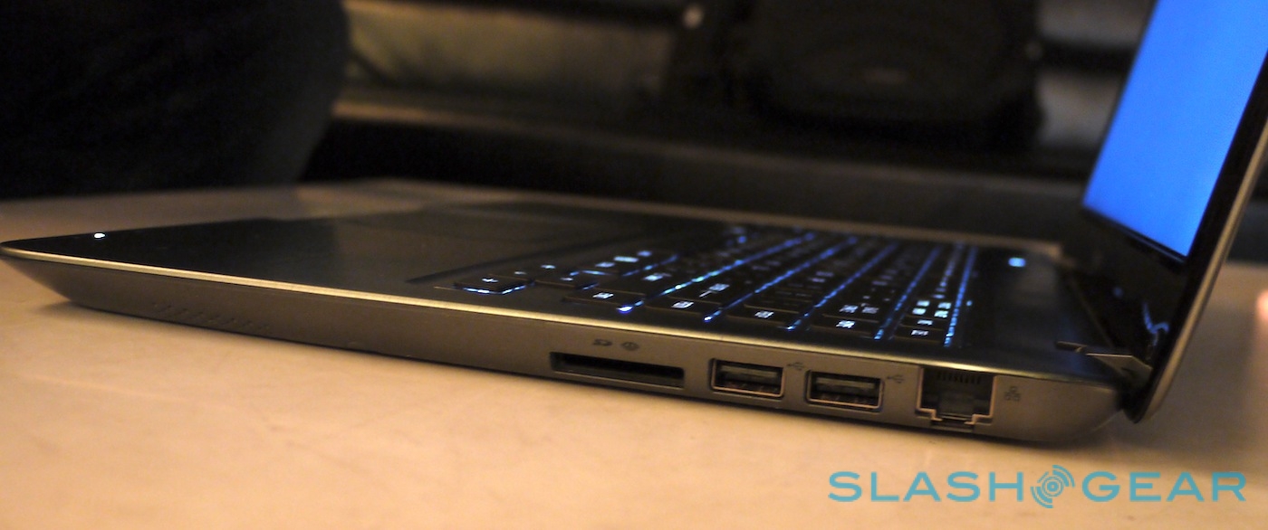 Connectivity includes WiFi b/g/n, Bluetooth 4.0, Intel WiDi, three USB 3.0, ethernet and a multi-format memory card reader, while storage uses a combination of a 500GB HDD and a 32GB SSD for faster loading of Windows. Up to 10GB of DDR3 memory can be installed, together with a choice of ultrabook-centric Ivy Bridge Intel processors.