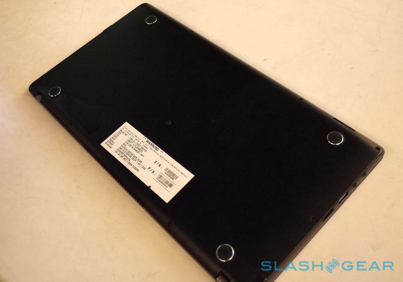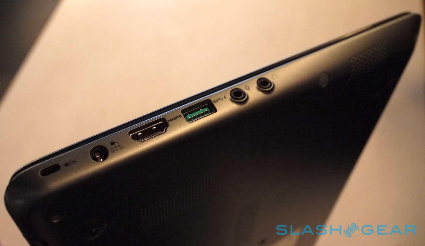 That way, Toshiba tells us, you can have a regular 16:9 widescreen movie playing and still have a 5:9 aspect app down the side, ideal for keeping up with mid-movie Twitter chat. The display itself uses LED backlighting, and there's harman-kardon speakers and SRS Premium Sound 3D together with an HDMI output for using a bigger display.
